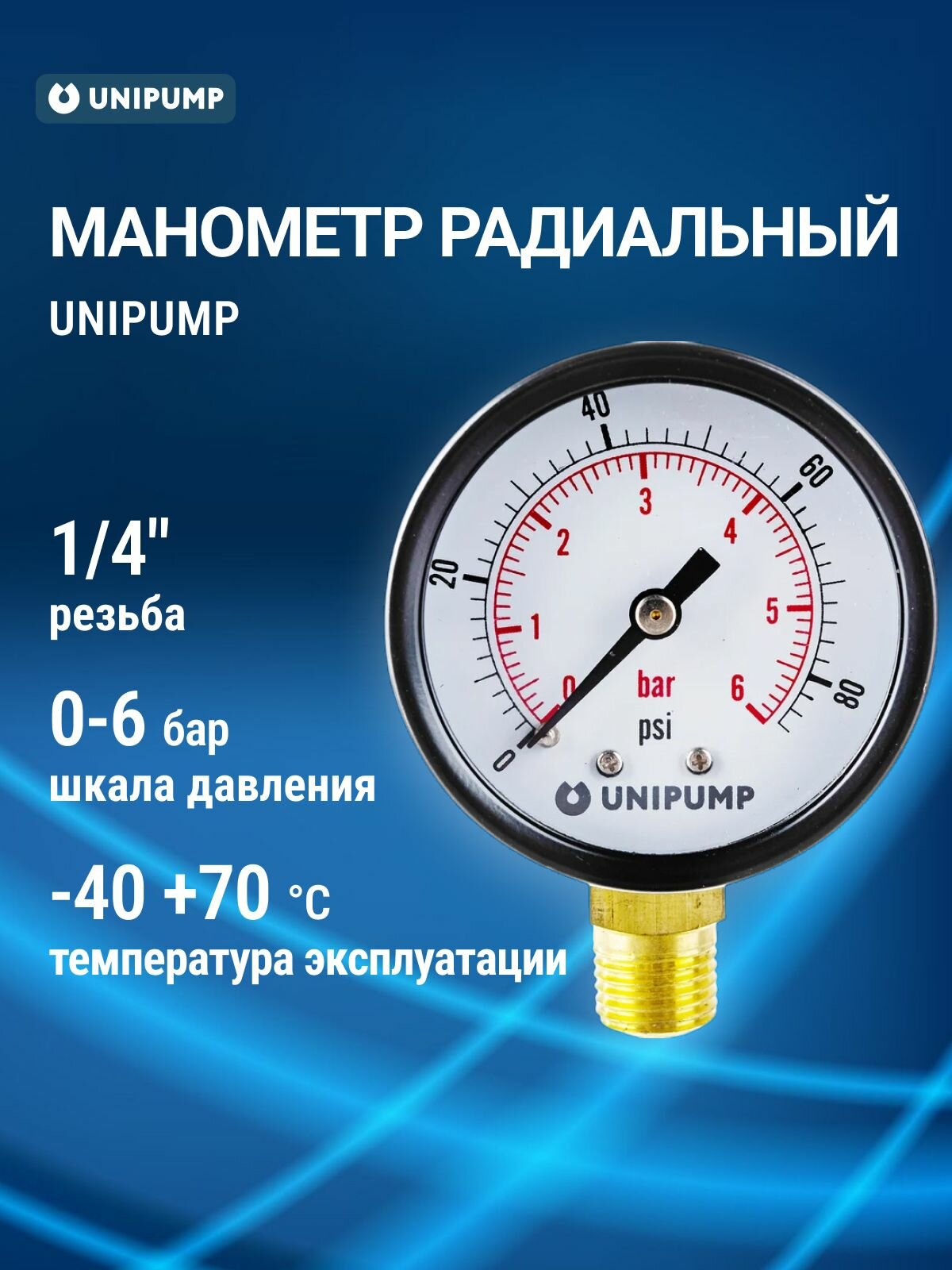 Манометр радиальный 0-6 бар UNIPUMP - 1/4"