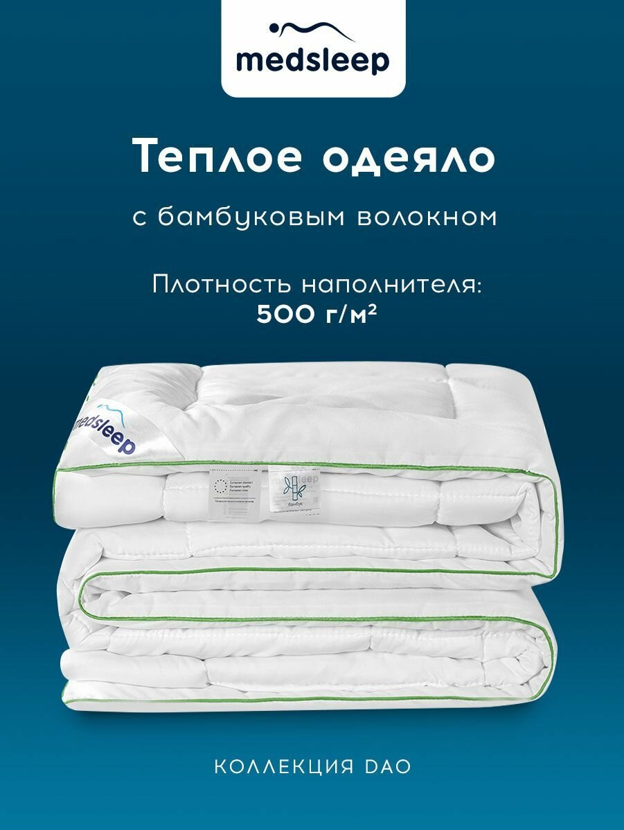 Medsleep Одеяло полуторное, зимнее "DAO" теплое 500 г/м2, бамбуковое волокно, микроволокно "Лебяжий пух", 140х200