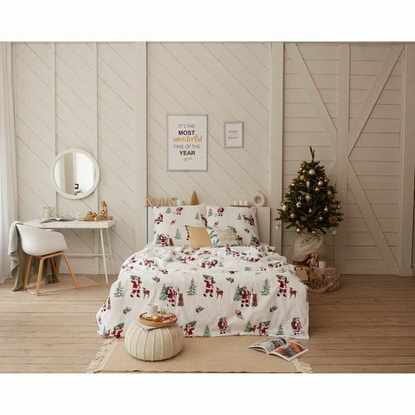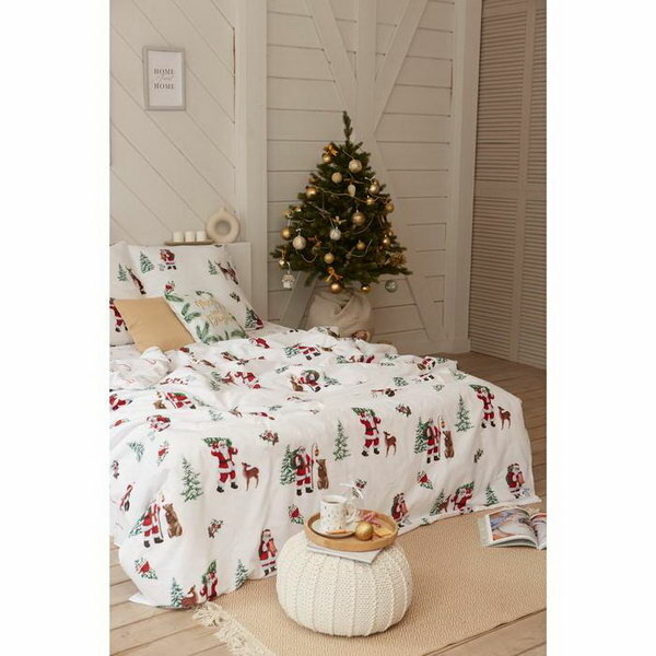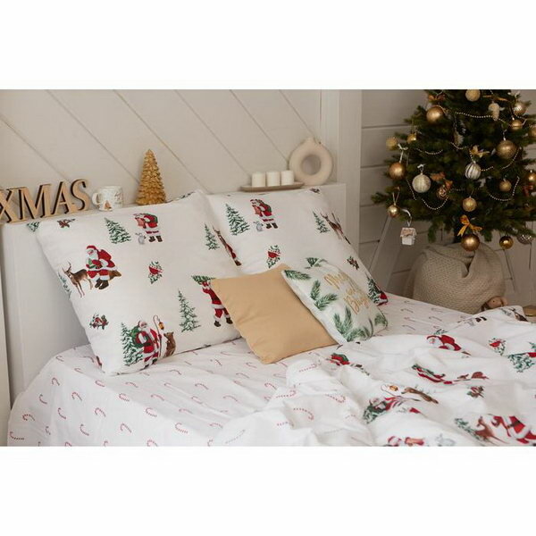 Постельное белье новогоднее 1.5 сп Новогодний лес 143*215 см, 150*214 см, 70*70 см - 2 штуки