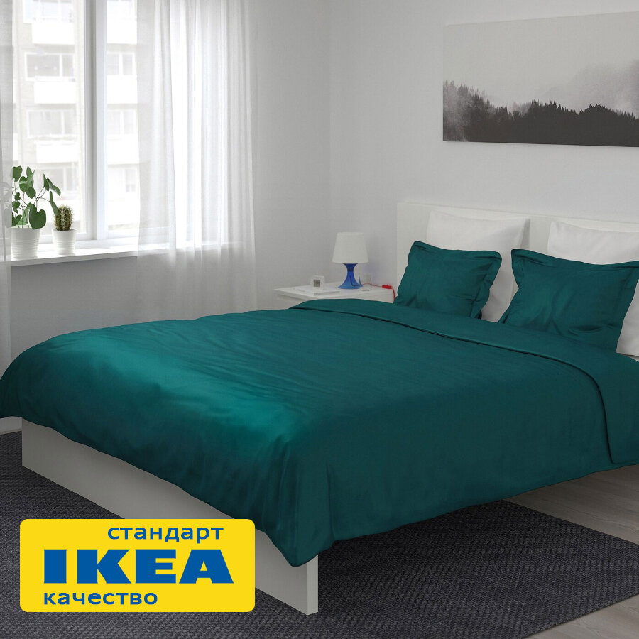 СохранитьПостельное белье 2 спальное лютесмио (икеа люктэсмин) 200x200/50x70 темно-зеленый, сатин KL-80432929 интересное: