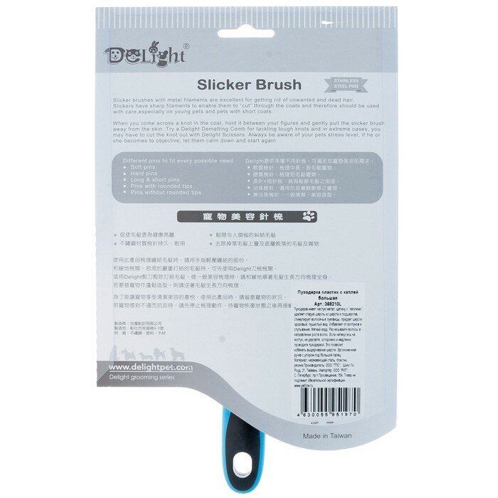 Пуходерка Delight пластик с каплей средняя, для кошек и собак