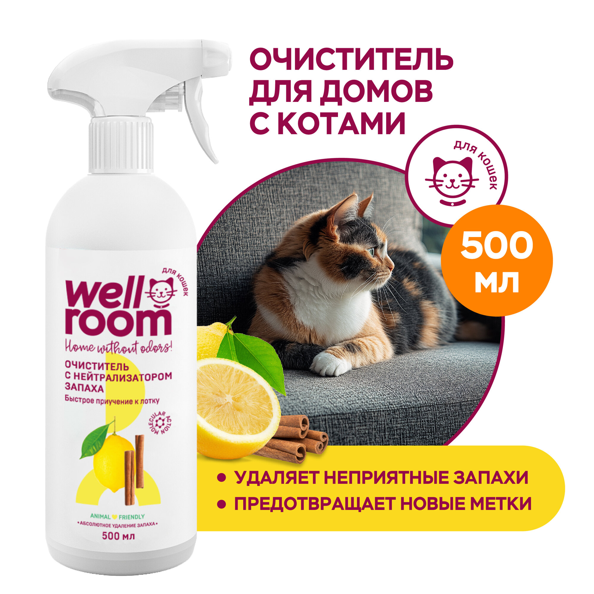 Очиститель с нейтрализатором запаха Wellroom, против меток, кошки, корица/цитрус, 500 мл