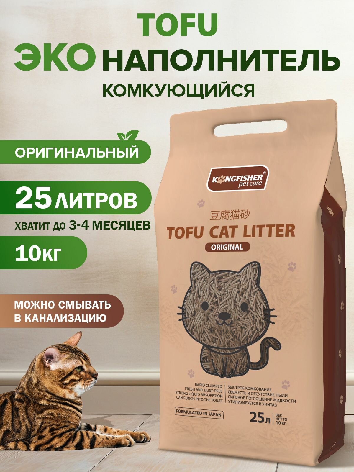 Наполнитель для кошачьего туалета, TOOCATTISH, Оригинал, 20 кг, 48 л, тофу, комкующийся, соевый, смываемый