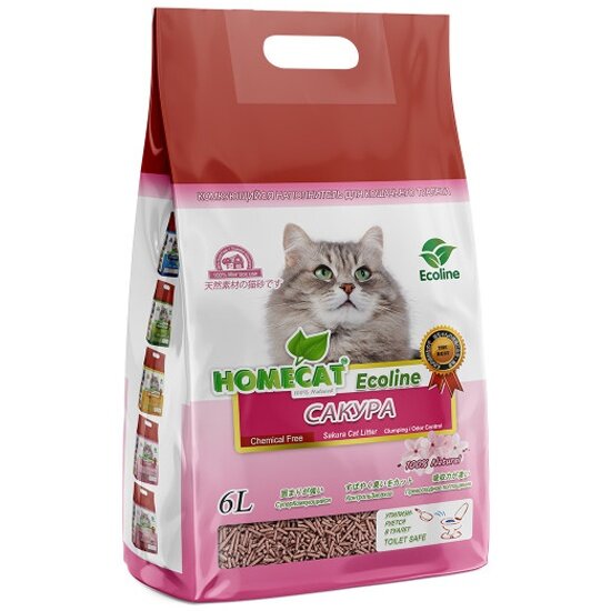 HOMECAT Ecoline Сакура комкующийся наполнитель для кошачьих туалетов с ароматом сакуры 6х6л
