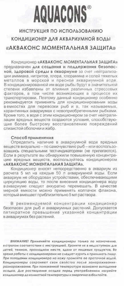 СохранитьЗоомир Акваконс Моментальная защита - кондиционер для воды быстрая нейтрализация аммиака, нитратов и т.д. 50мл интересное: