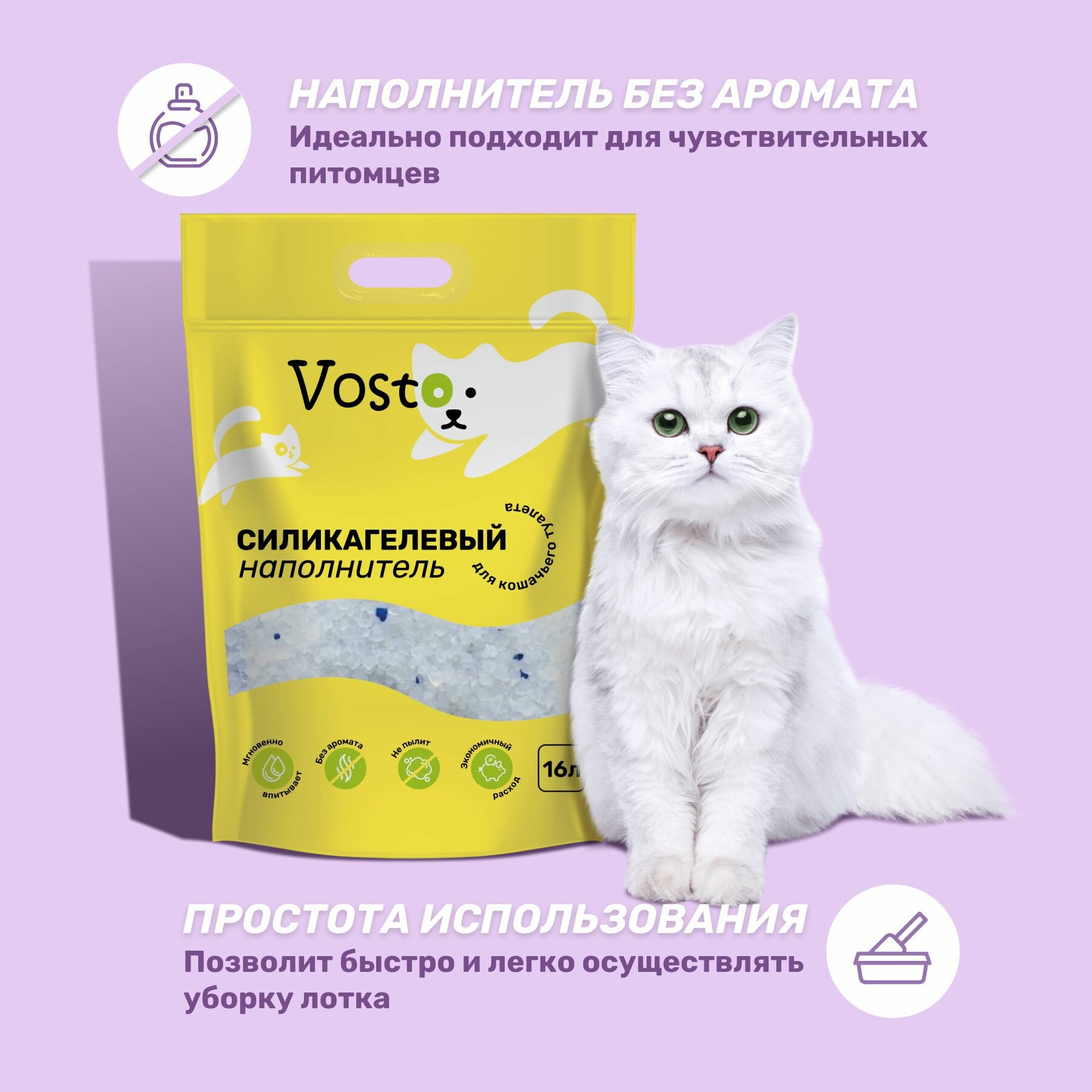 Ниже Вы можете прочитать отзывы на Наполнитель для кошачьих туалетов Vosto, силикагель, впитывающий, без аромата, антибактериальный, 16л, ознакомится с подробными характеристиками, посмотреть интересные обзоры и фотографии на Наполнитель для кошачьих туалетов Vosto, силикагель, впитывающий, без аромата, антибактериальный, 16л.