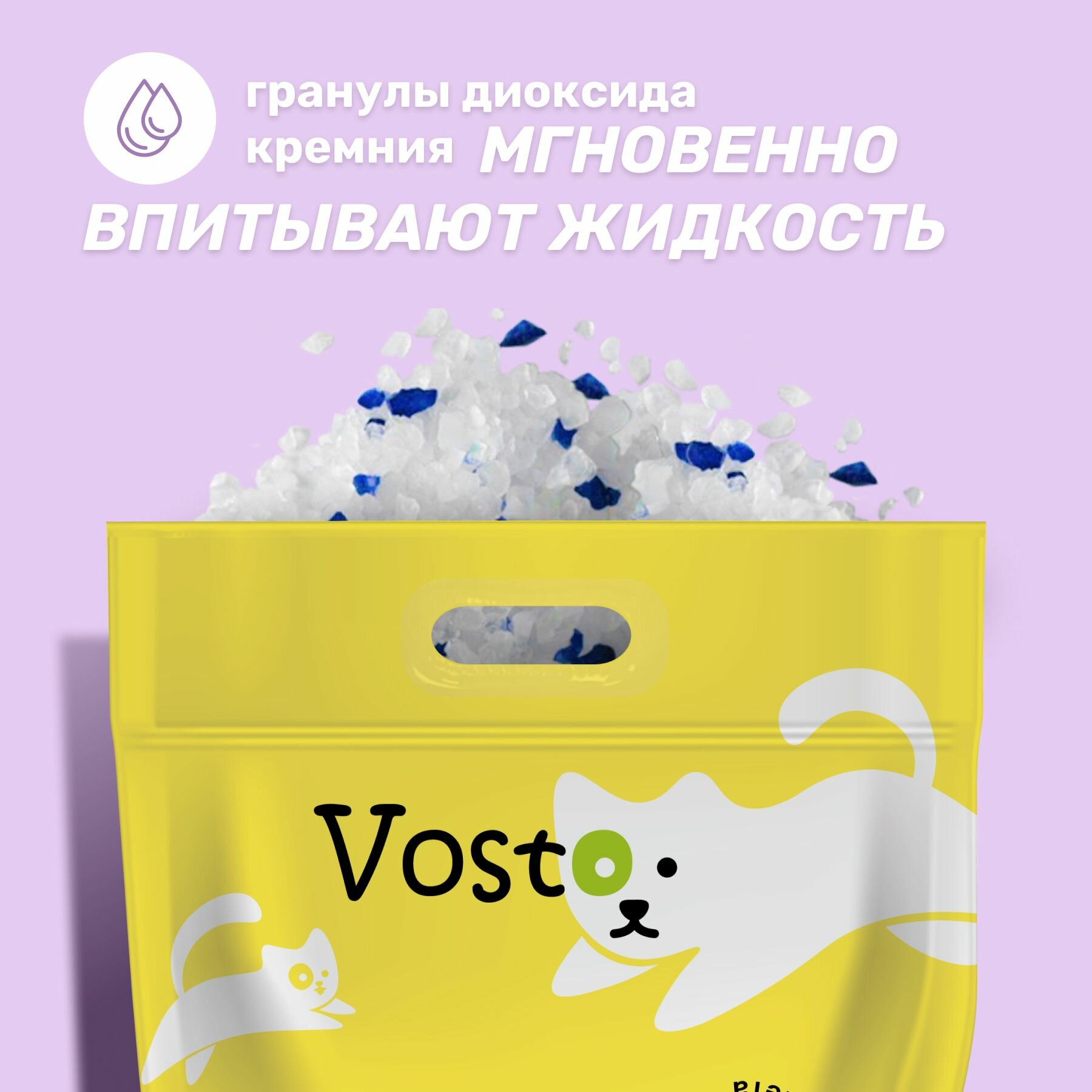 Силикагелевый наполнитель для кошачьего туалета 3 л Vosto без аромата, впитывающие гранулы для кошек, силикагель для защиты от запаха
