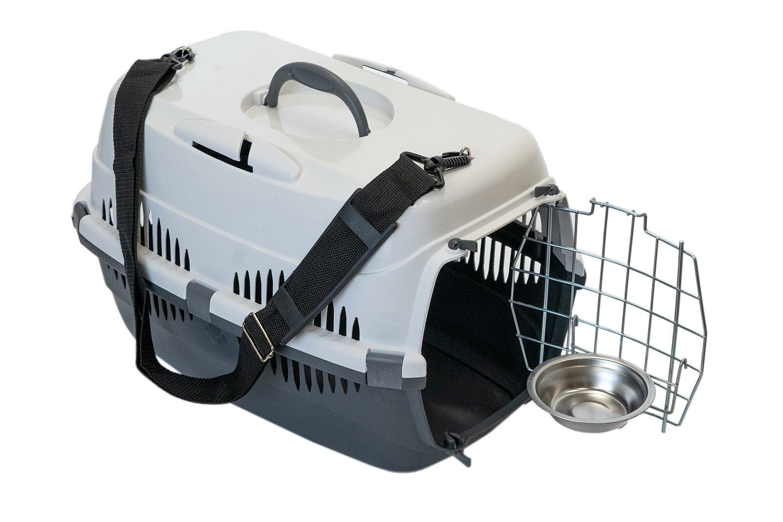 Купить Переноска для животных "Спутник" с наплечным ремнем+миска, серый, до 12 кг