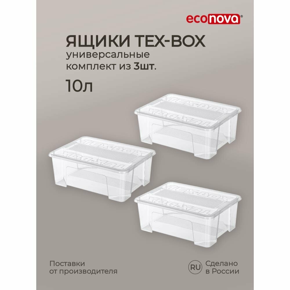 Купить Комплект ящиков для хранения с крышкой Econova Tex-box 10 л, 3 шт, 38x28x14 см, прозрачный 43429260122