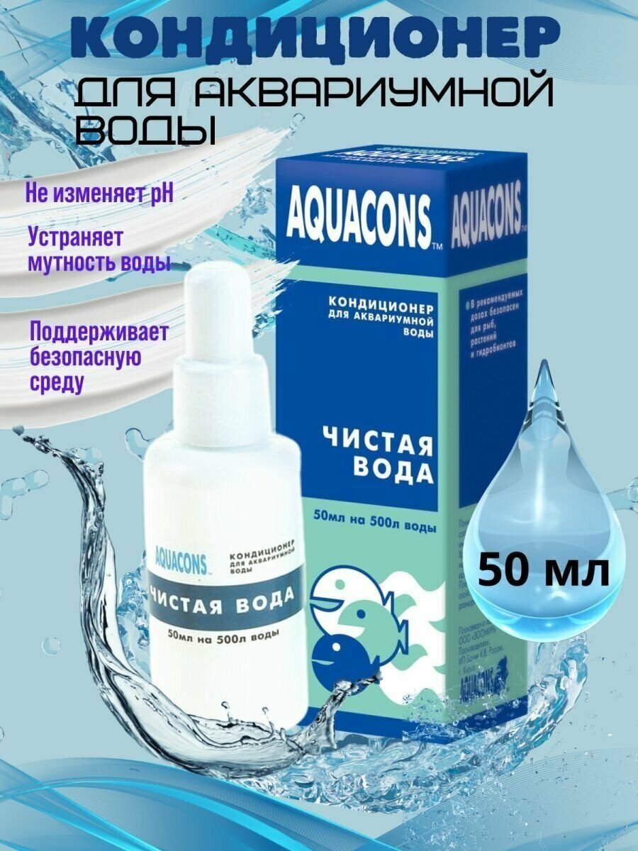 AQUACONS 50 мл кондиционер для аквариумной воды чистая вода 1х10