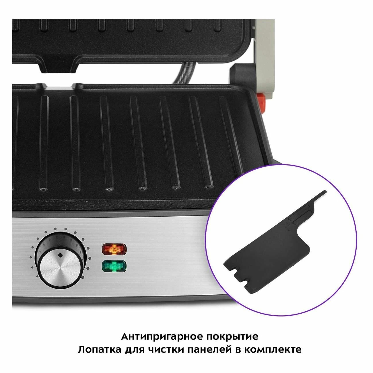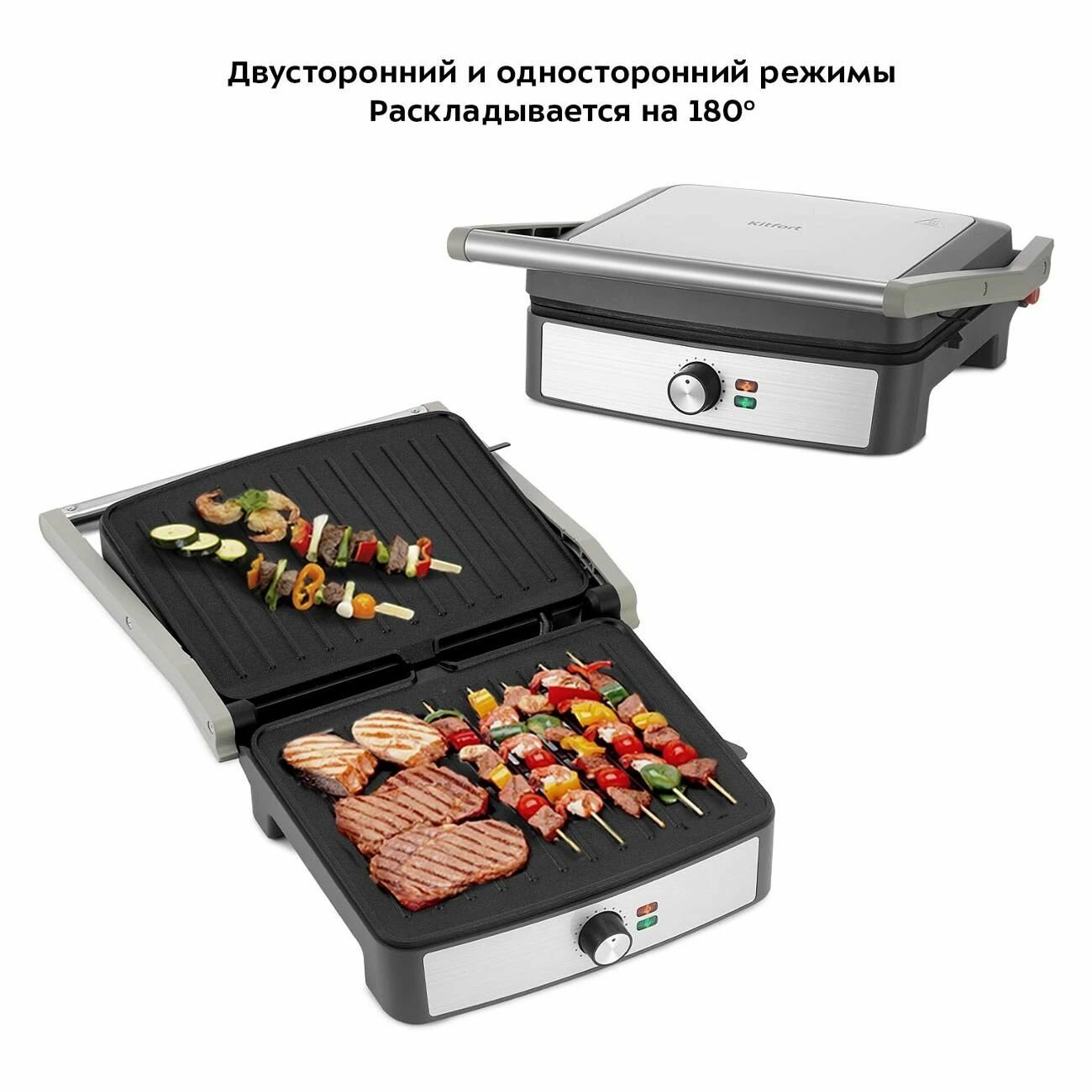 Электрогриль / гриль электрический Kitfort КТ-3630, серебристый, 2200 Вт, с поддоном, антипригарное покрытие. интересное: