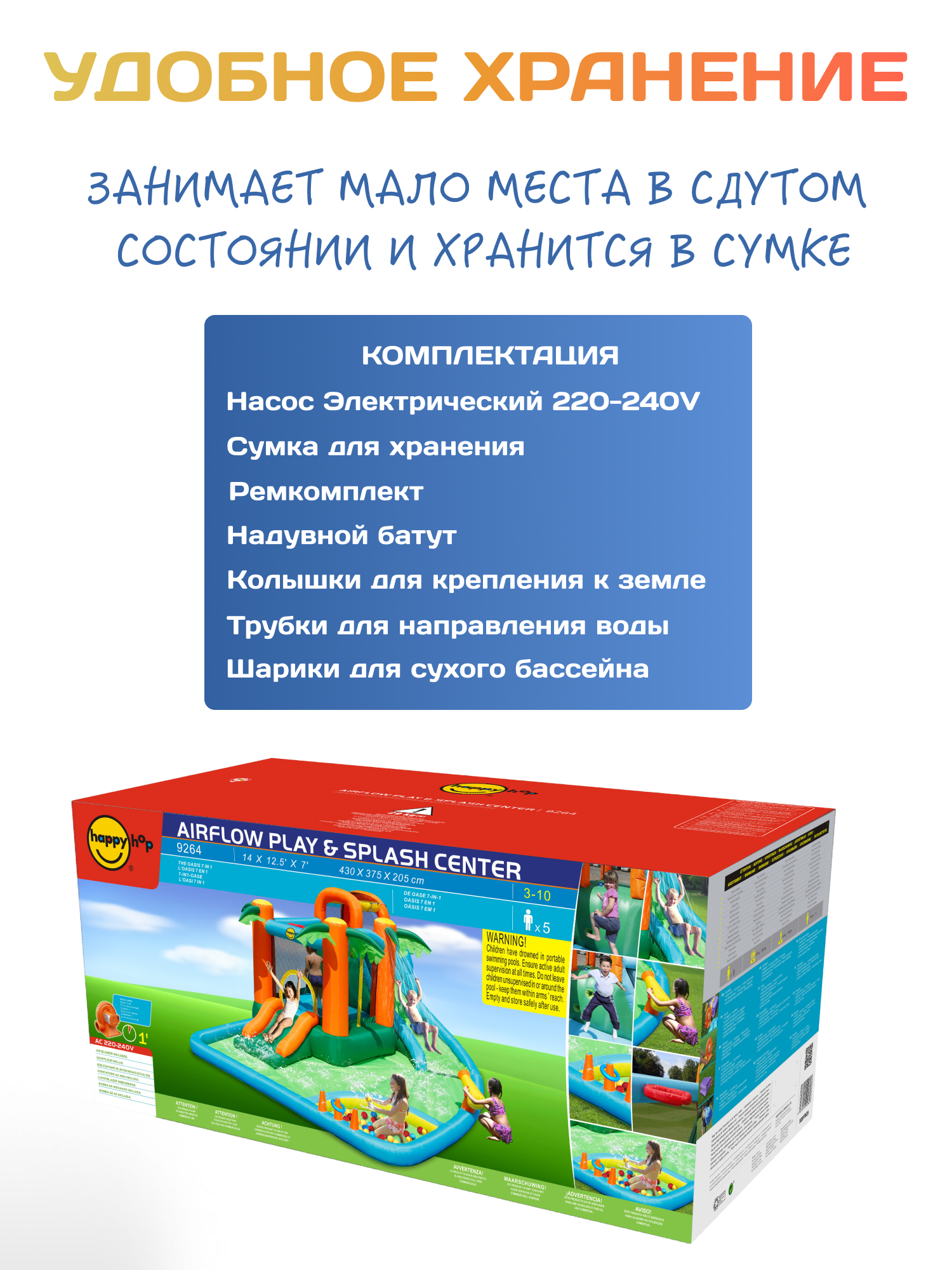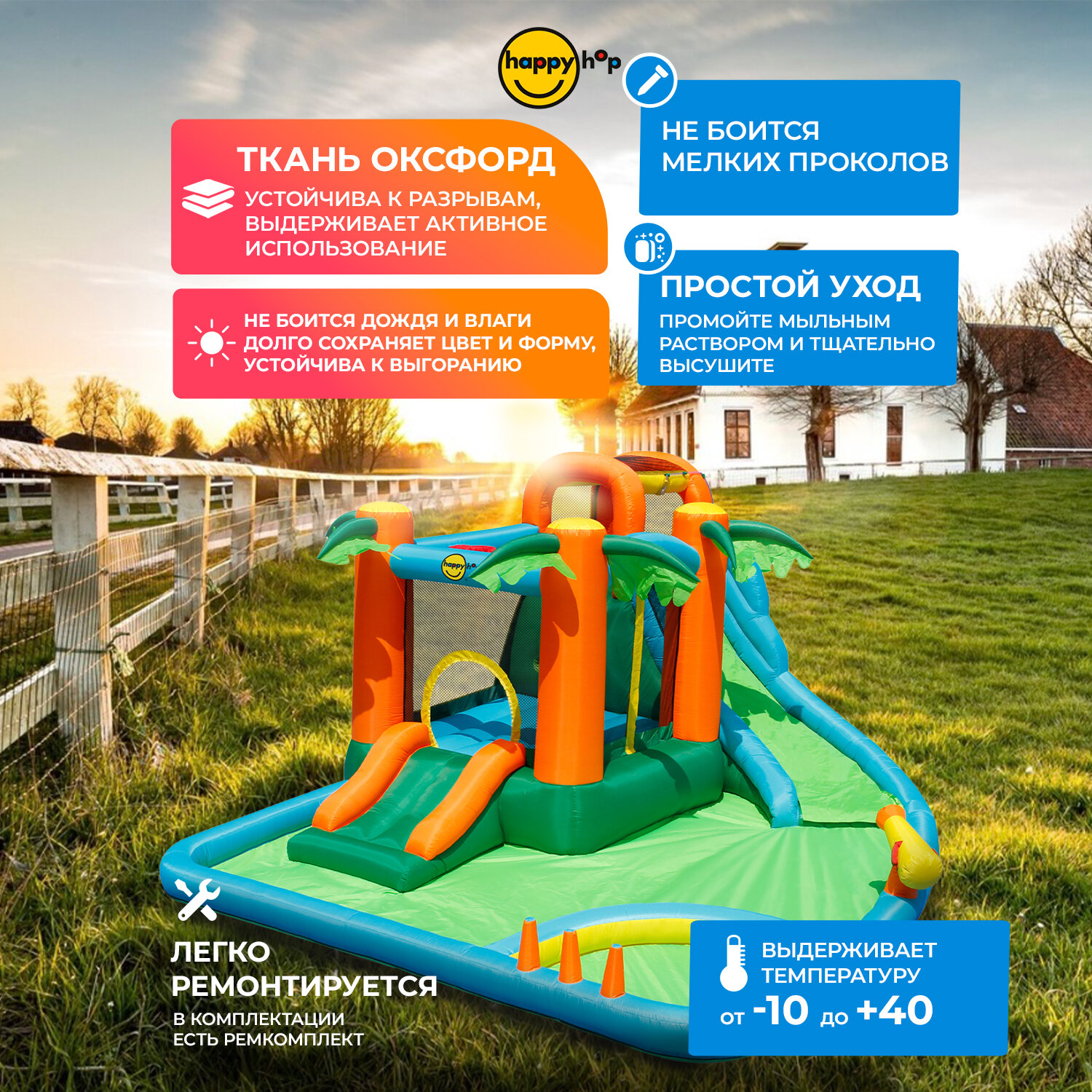 Купить Детский надувной батут для дома и улицы Happy Hop "Тропикана 2", с горкой, бассейн, с защитной сеткой, 430х375х205 см