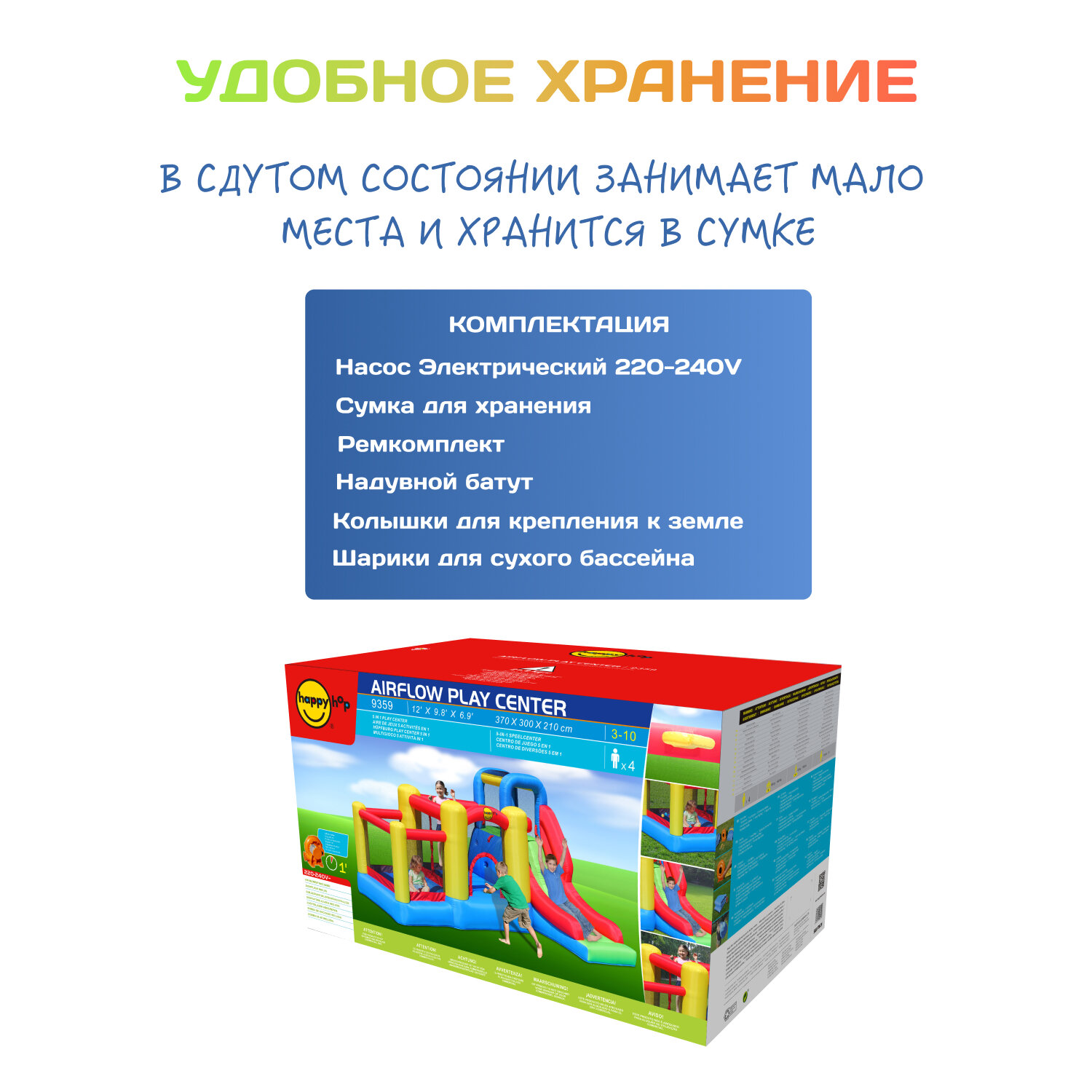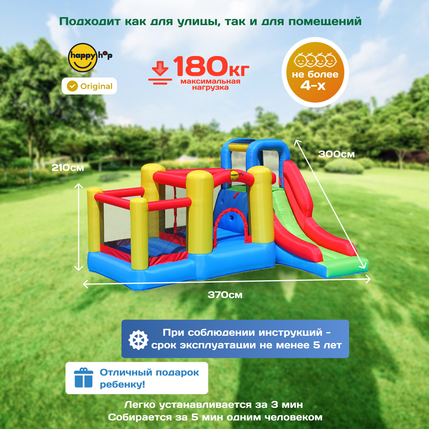 Купить Детский надувной батут Happy Hop для дома и улицы "Игровой центр 5 в 1", с горкой, с защитной сеткой, 370х300х210 см