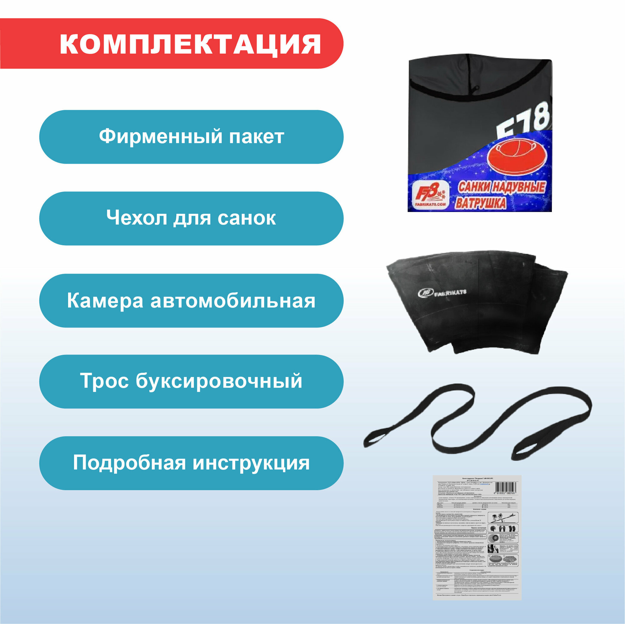 Тюбинг ватрушка F78 красная 110 см ПВХ, с камерой