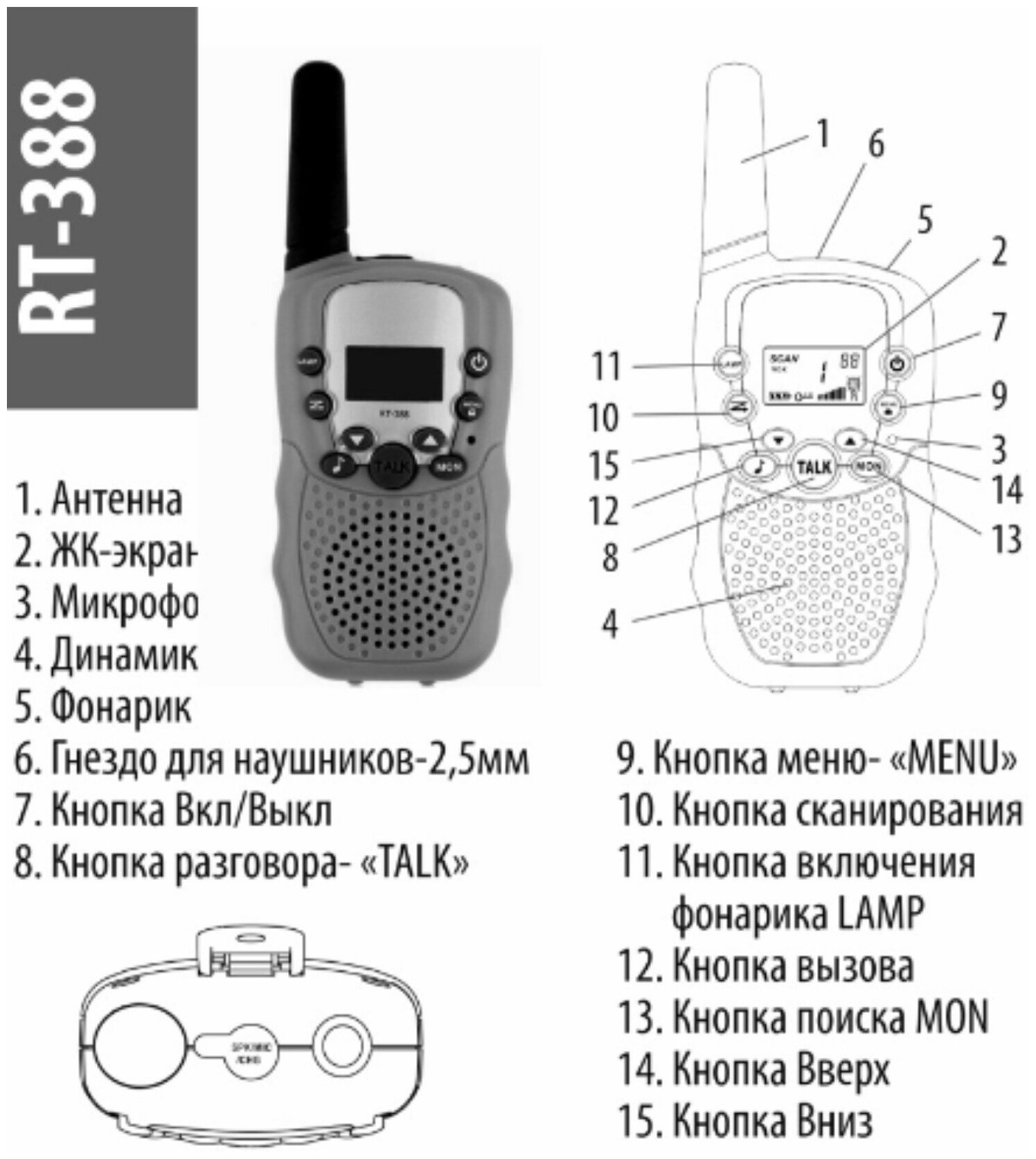 Набор раций для детей / Набор игровой 2-х портативных раций с двусторонней связью с ЖК-дисплеем детских Walkie Talkie Set T-388 интересное: