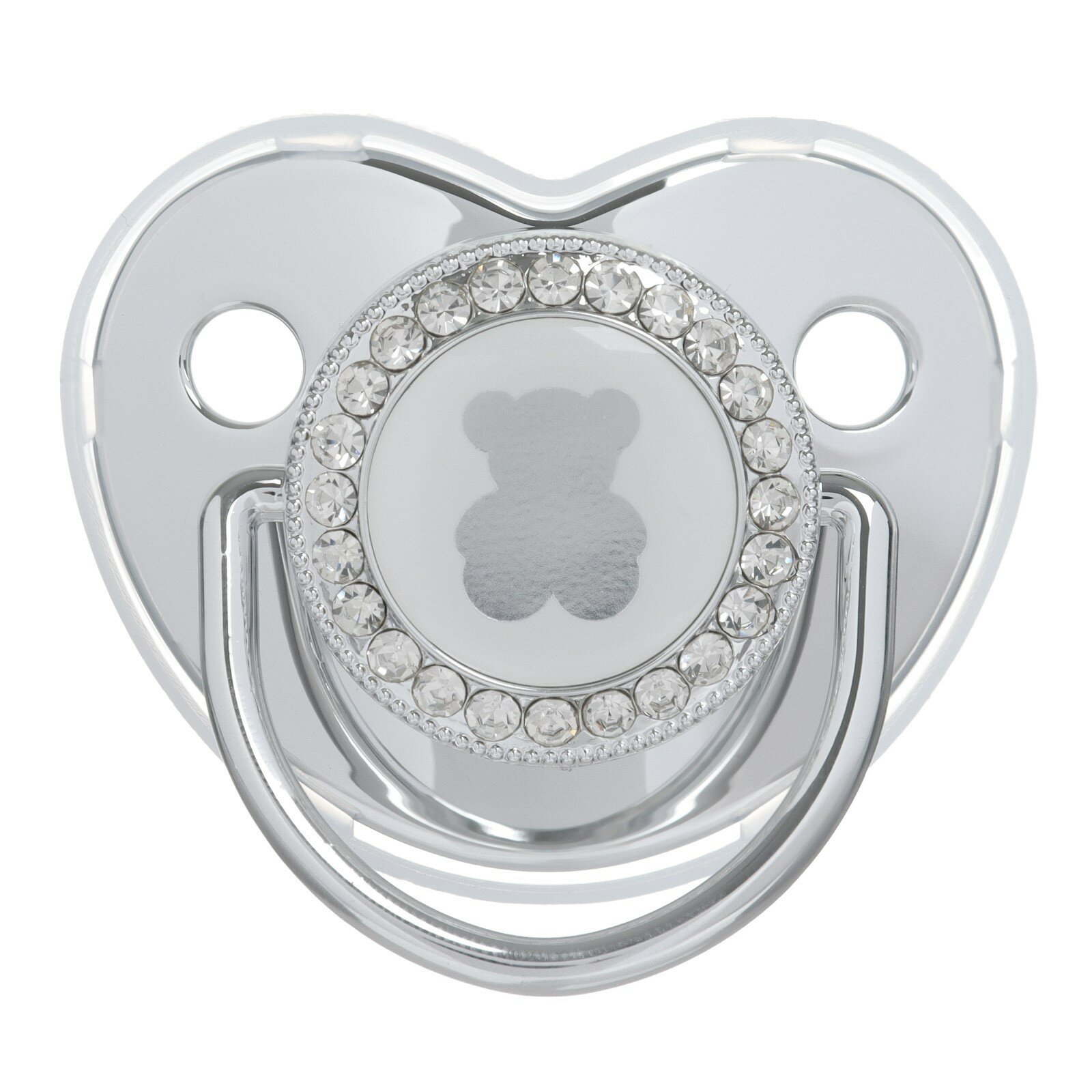 Купить Соска - пустышка ортодонтическая «Мишка», с колпачком, + 12 мес, серебряная, стразы