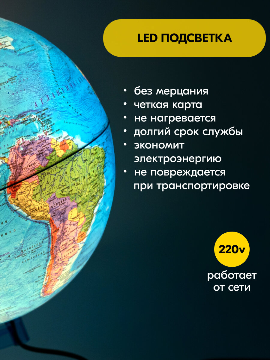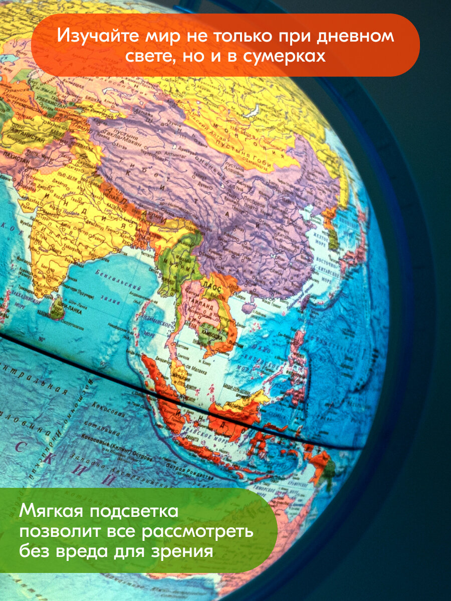 | Особенности | интерактивный / меридиан с лупой / на дуге / рельефный / с подсветкой |