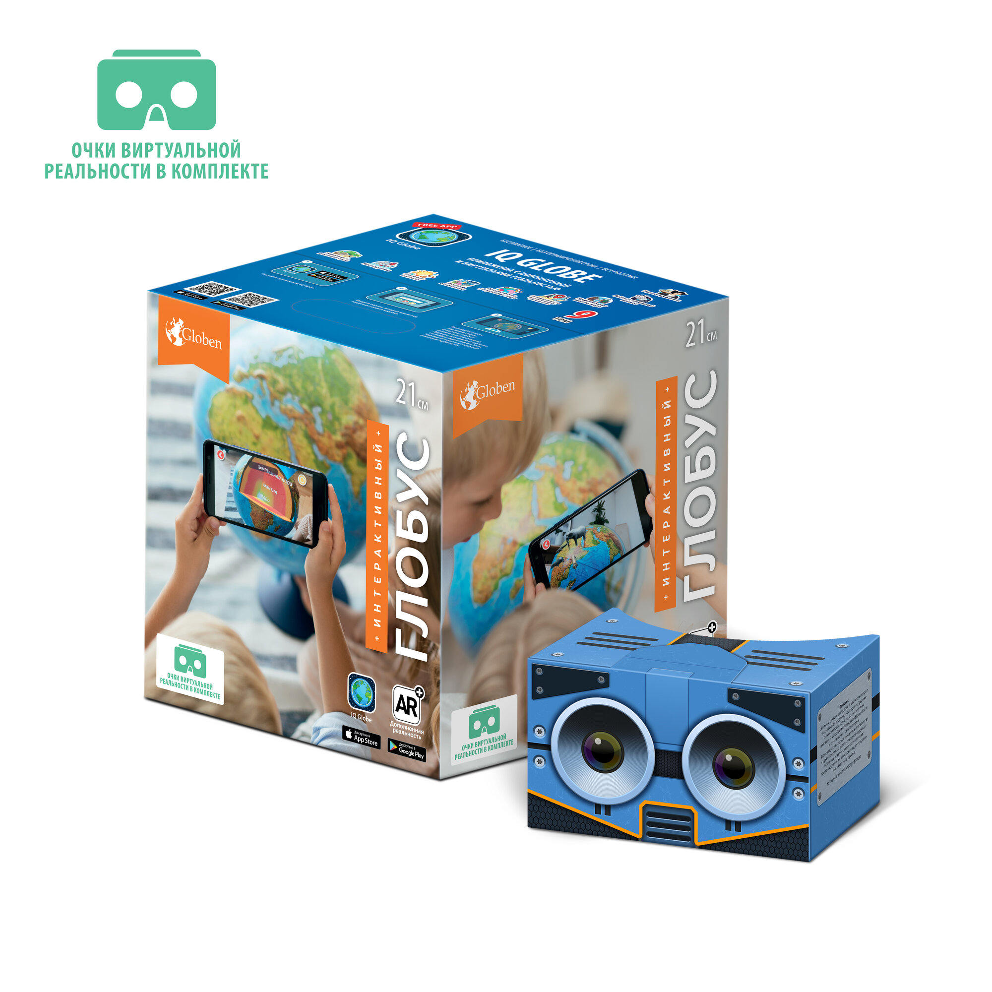 Интерактивный глобус GLOBEN политический с подсветкой 210 мм с очками VR INT12100294
