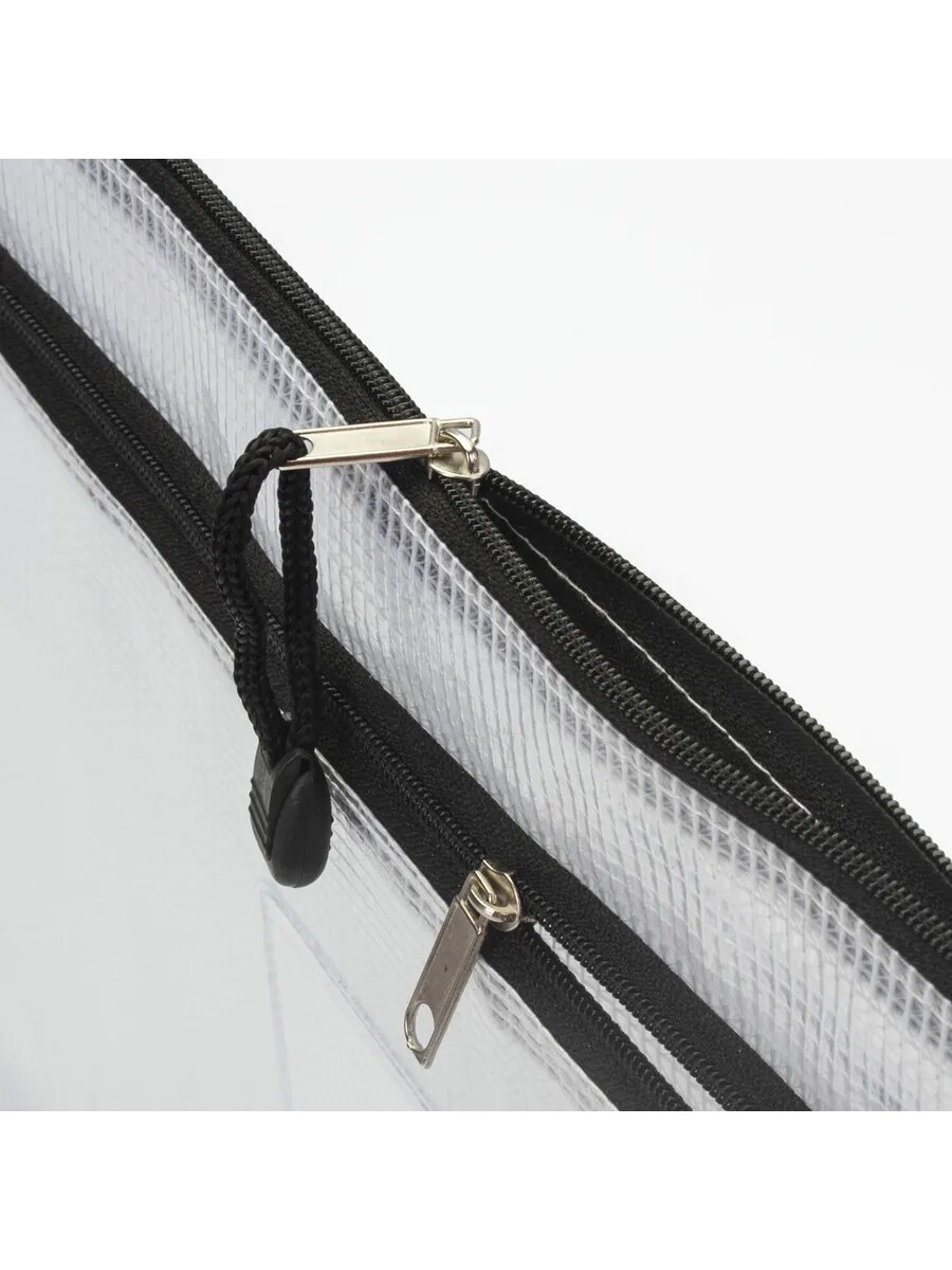 Папка-конверт на молнии А4 (335х243 мм), 2 отделения, ПВХ, прозрачная, 0,3 мм, BRAUBERG "Solid", 223889