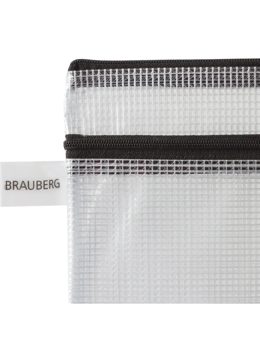 Комплект 17 шт, Папка-конверт на молнии А4 (335х243 мм), 2 отделения, ПВХ, прозрачная, 0.3 мм, BRAUBERG "Solid", 223889