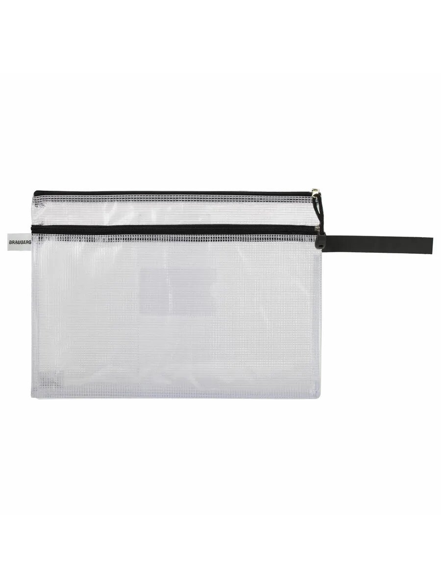 Комплект 12 шт, Папка-конверт на молнии А4 (335х243 мм), 2 отделения, ПВХ, прозрачная, 0.3 мм, BRAUBERG "Solid", 223889