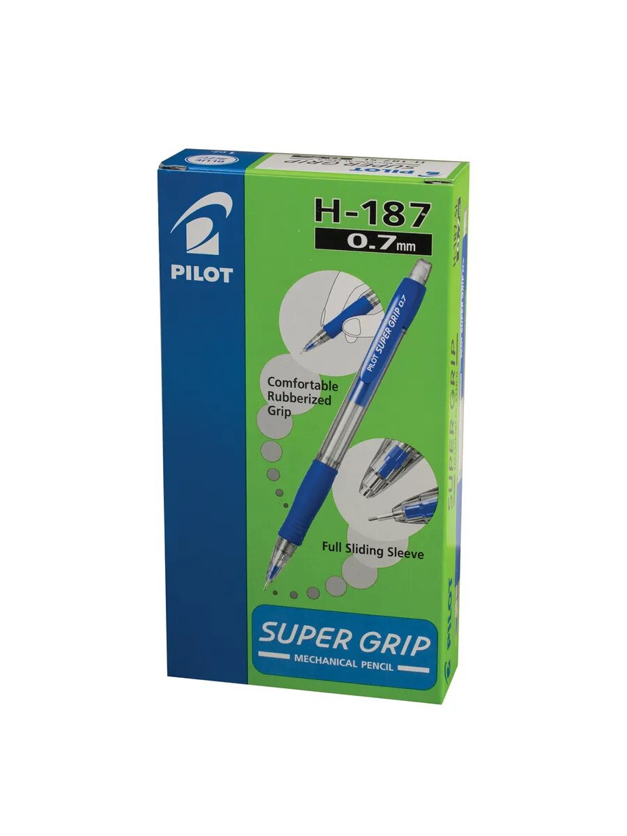 Карандаш механический 0 7 мм PILOT H-187 "Super Grip" ластик резиновый грип корпус синий H-187-SL, 12 шт