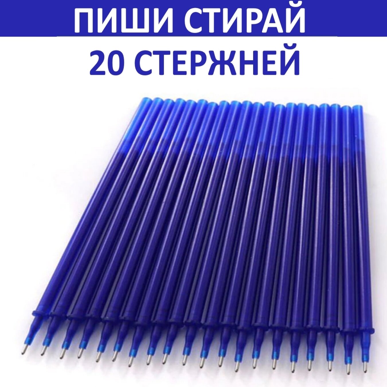 Стержни для гелевых ручек пиши-стирай, 20 штук, синий, стираемые чернила, толщина линии 0,5мм, синий. интересное: