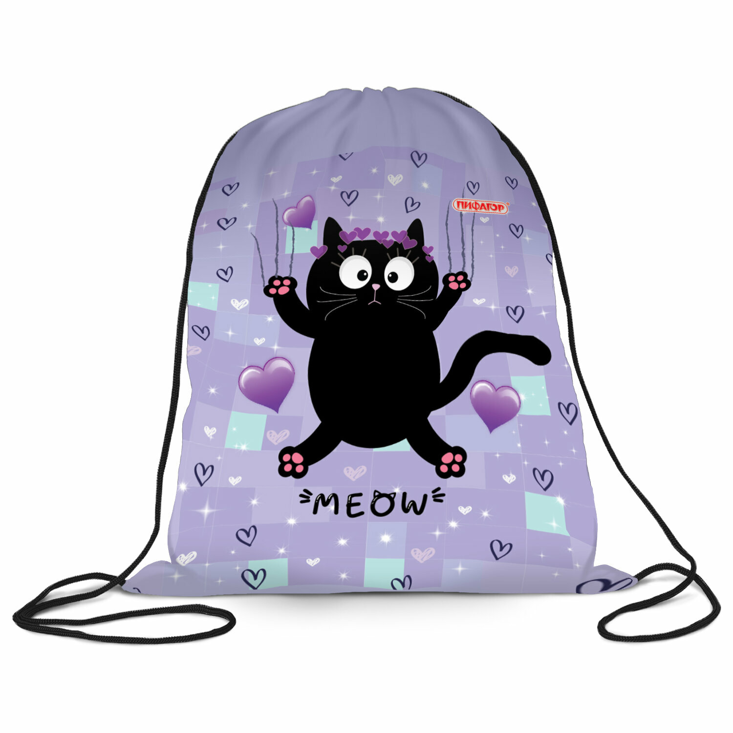 Мешок для обуви пифагор, 1 отделение, 40х32 см, Cats greetings, 272382