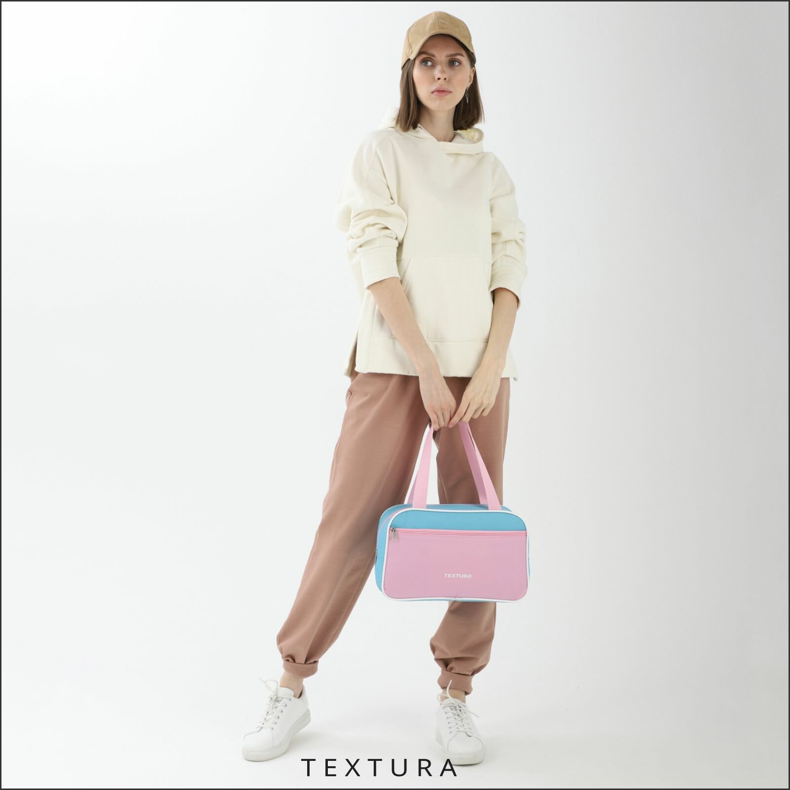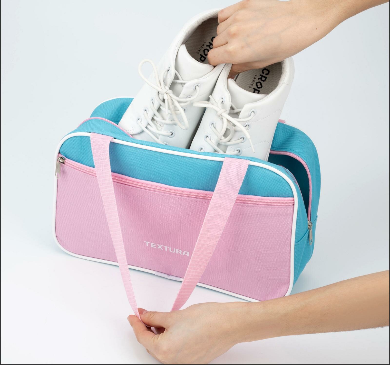 TEXTURA Сумка для обуви на молнии, TEXTURA, наружный карман, цвет розовый/голубой