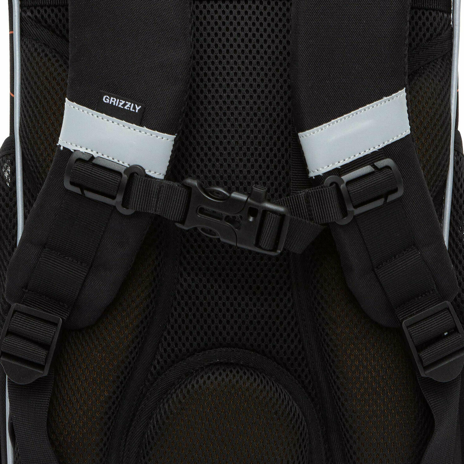 Школьный ранец с ортопедической спинкой GRIZZLY RAm-485-2/1 черный с мешком для обуви, грудная стяжка, 742 грамм, 33x25x13см