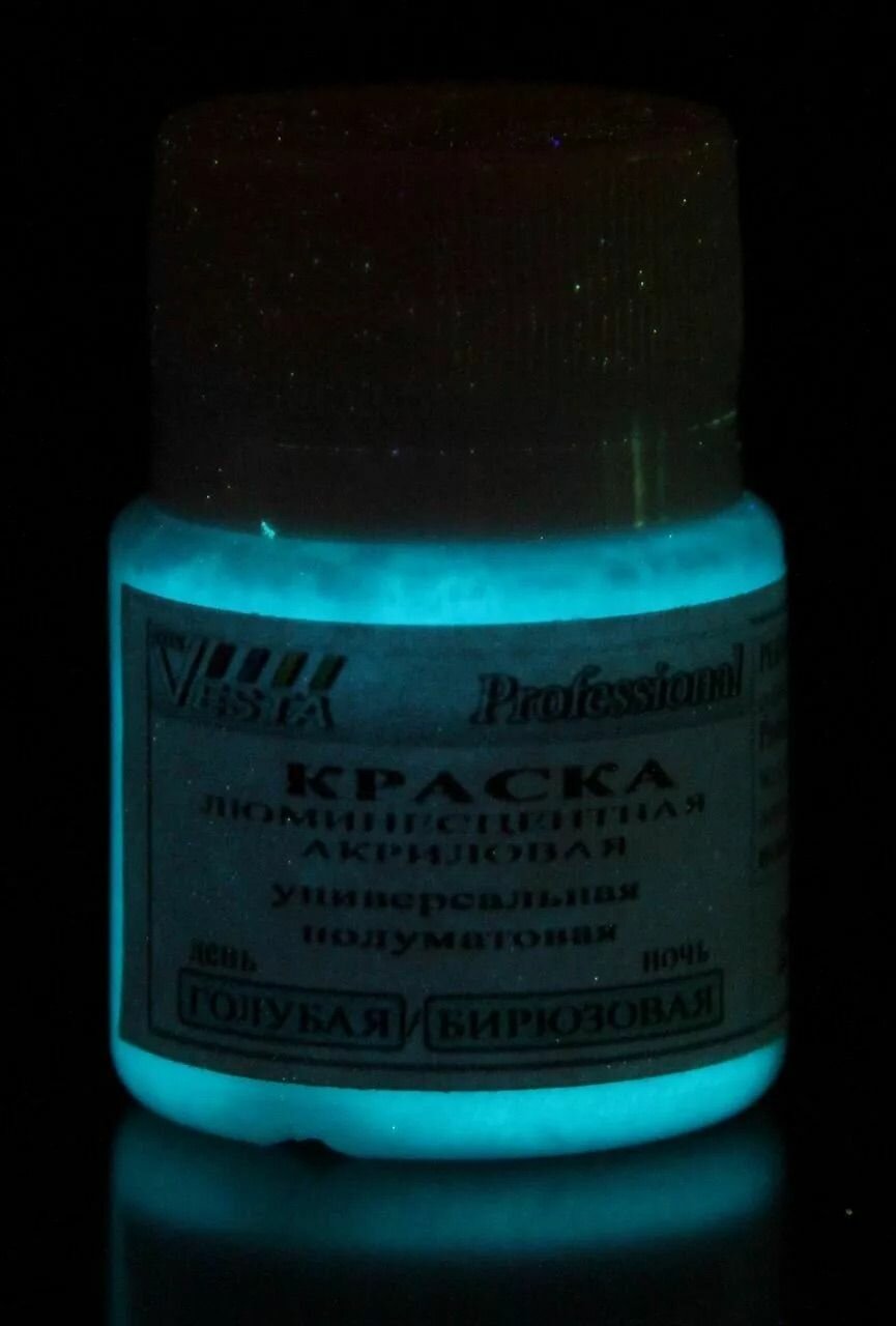 СохранитьКраска люминесцентная "VESTA PROFESSIONAL" голубая / бирюзовая (день / ночь) - 50 мл интересное: