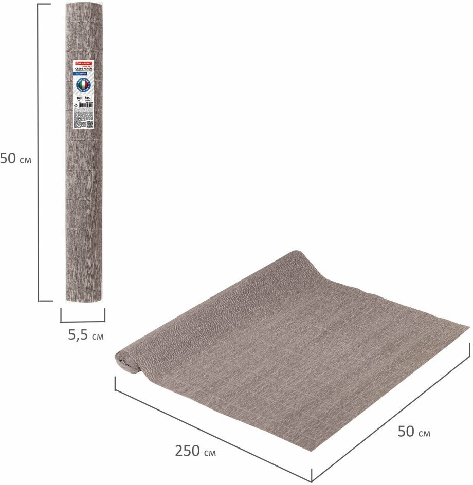 СохранитьБумага гофрированная/креповая (италия) 140 г/м2, 50х250 см, серая (904), BRAUBERG FIORE, 112598, 112598 интересное: