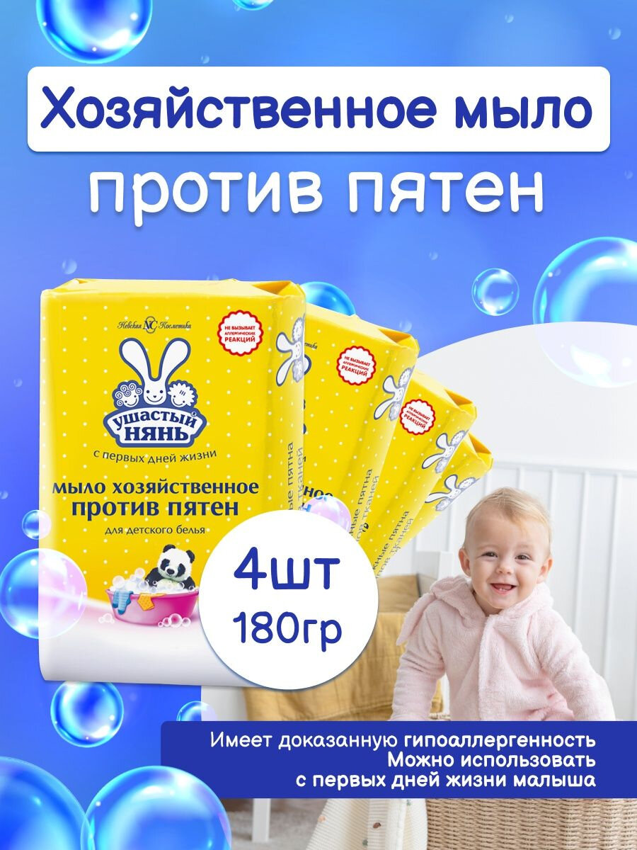 Мыло хозяйственное "Ушастый Нянь" против пятен, гипоаллергенное, без отдушек 180г 4 шт интересное: