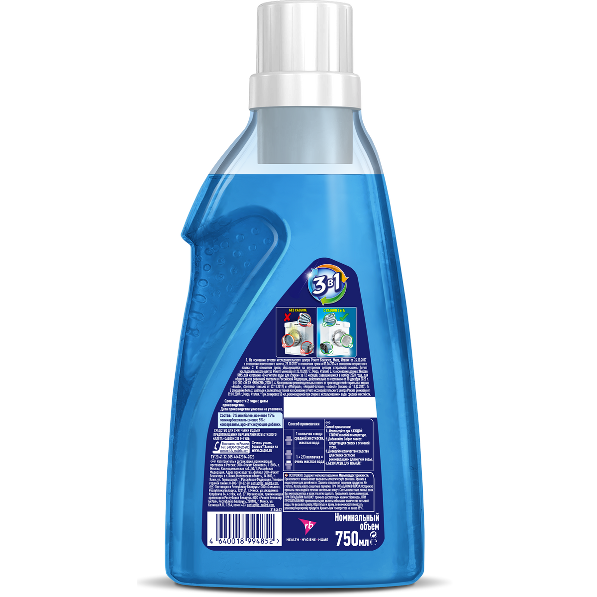 | Подробная комплектация | CALGON Gel 3 в 1 Cредство для cмягчения воды и предотвращения накипи 400 мл. х 2 шт. |