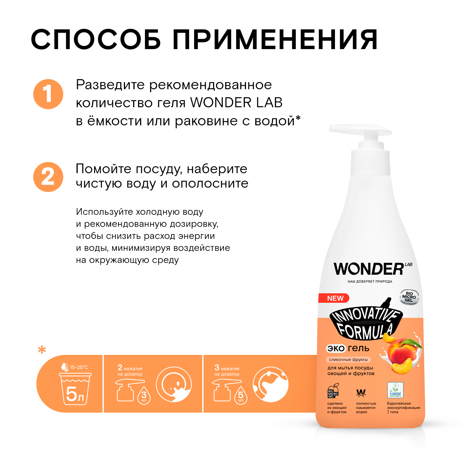 WONDER LAB Экогель для мытья посуды, овощей и фруктов Сливочные фрукты, 550 мл, 2 ШТ