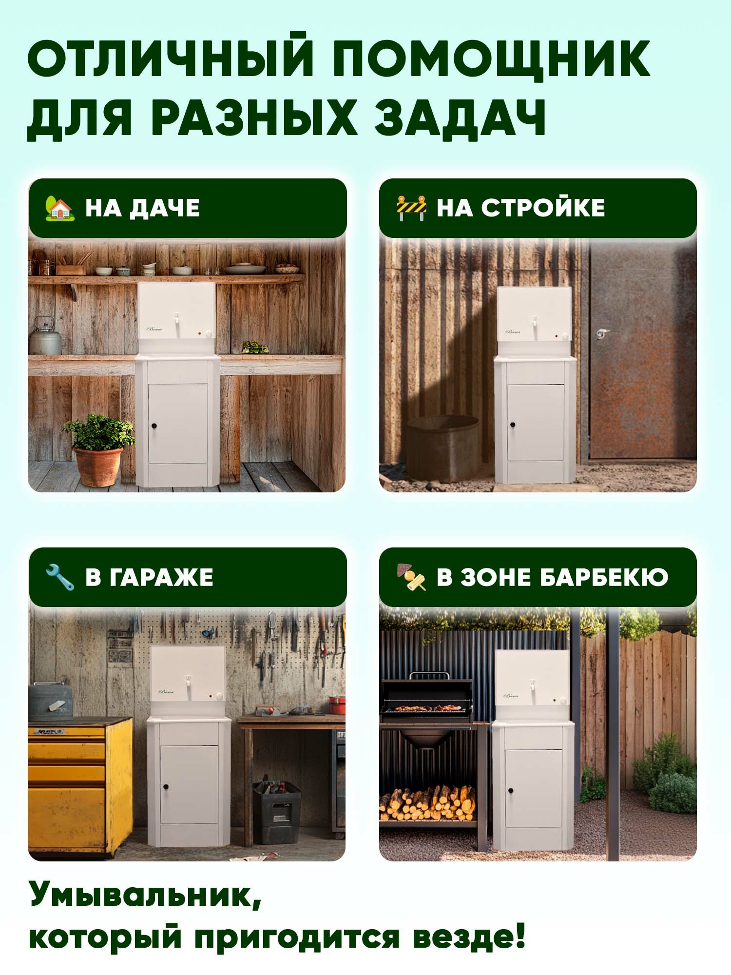 Умывальник дачный "Весна" мини с подогревом, тумба, пластмассовая мойка, цвет белый интересное: