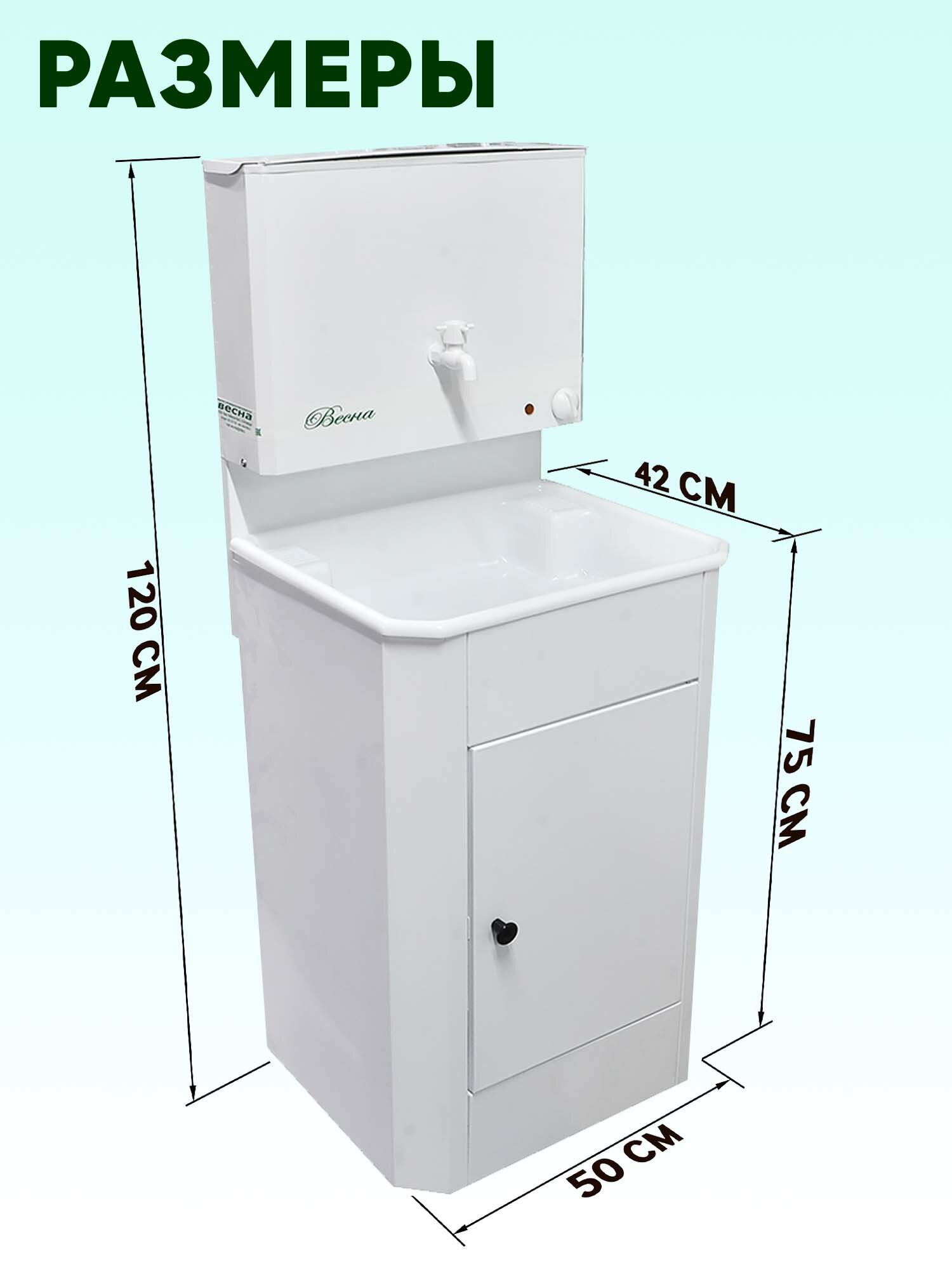 Купить Умывальник дачный "Весна" с подогревом, тумба, пластмассовая мойка, цвет белый