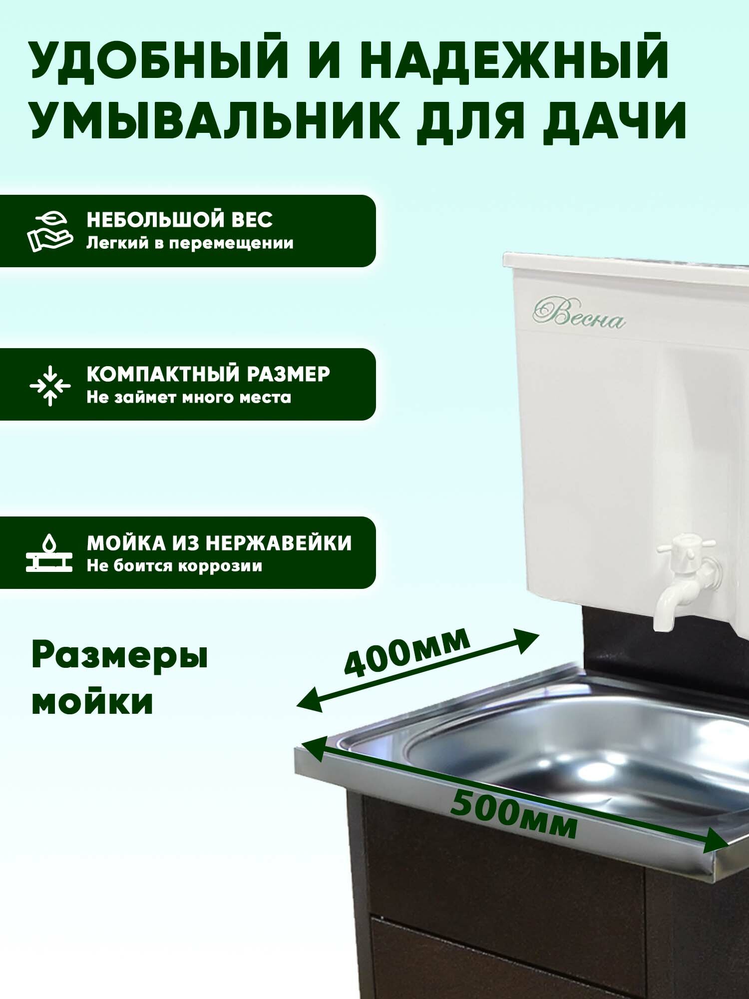 Умывальник дачный "Весна" без подогрева, тумба из ЛДСП, пластмассовый бак, нержавеющая мойка