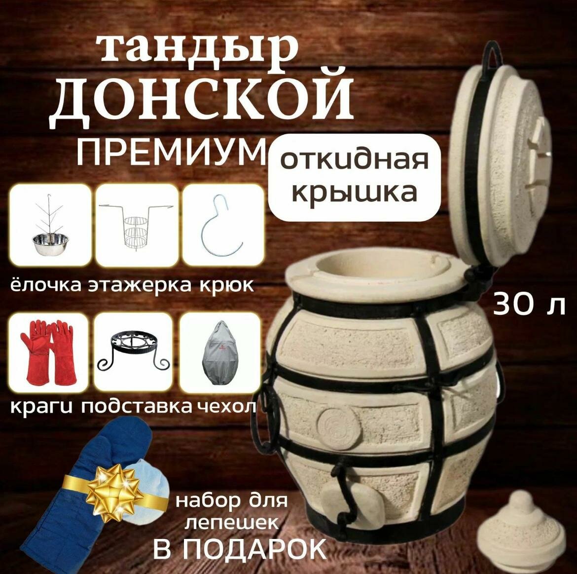 Донской с откидной крышкой - набор "Премиум" тандыр для дачи маленький - 30л, Amfora. интересное: