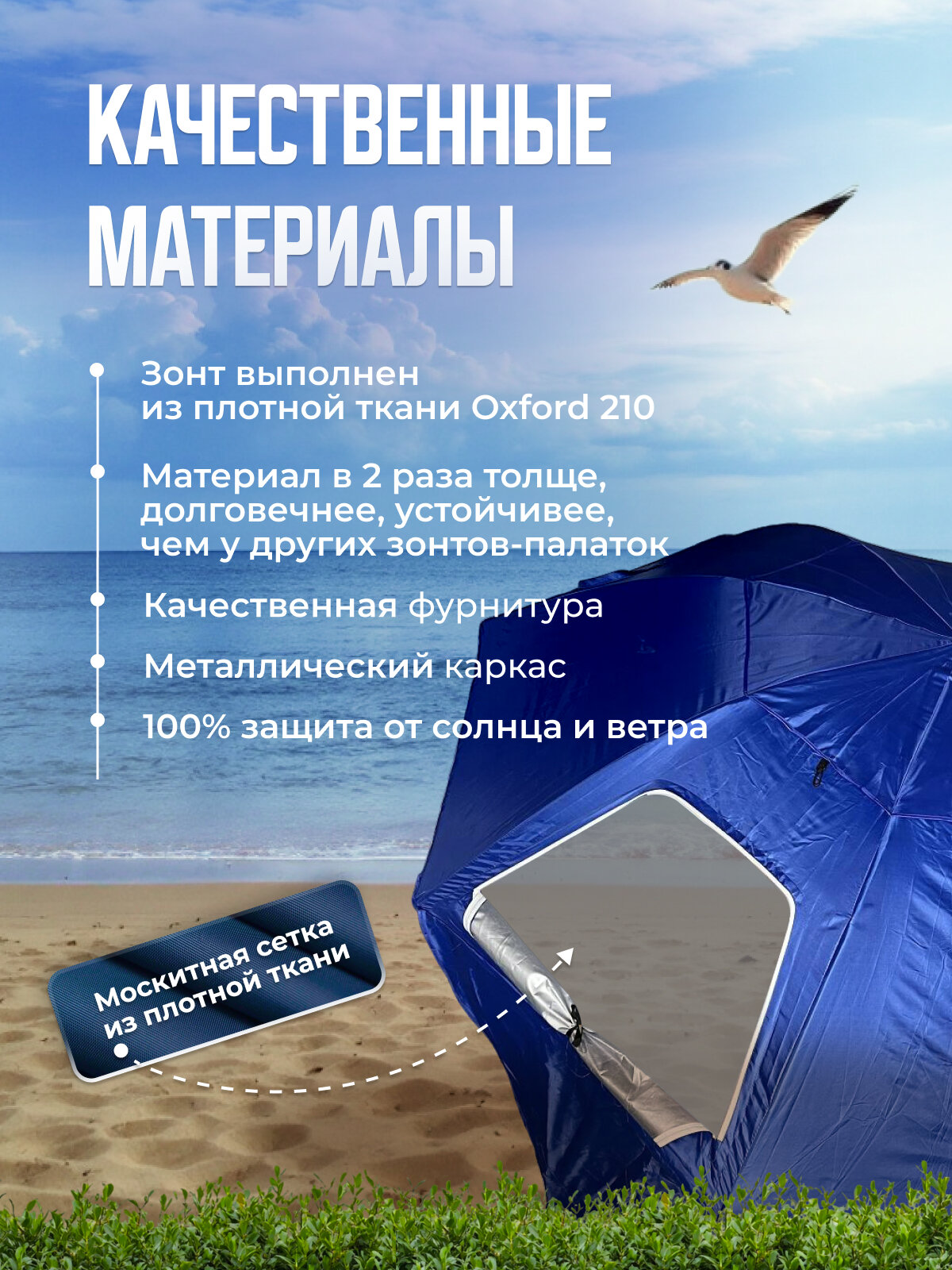 Большой пляжный зонт от солнца с окошками и карманами LUXLINE зонт для рыбалки зонт палатка складной пляжный зонт синий