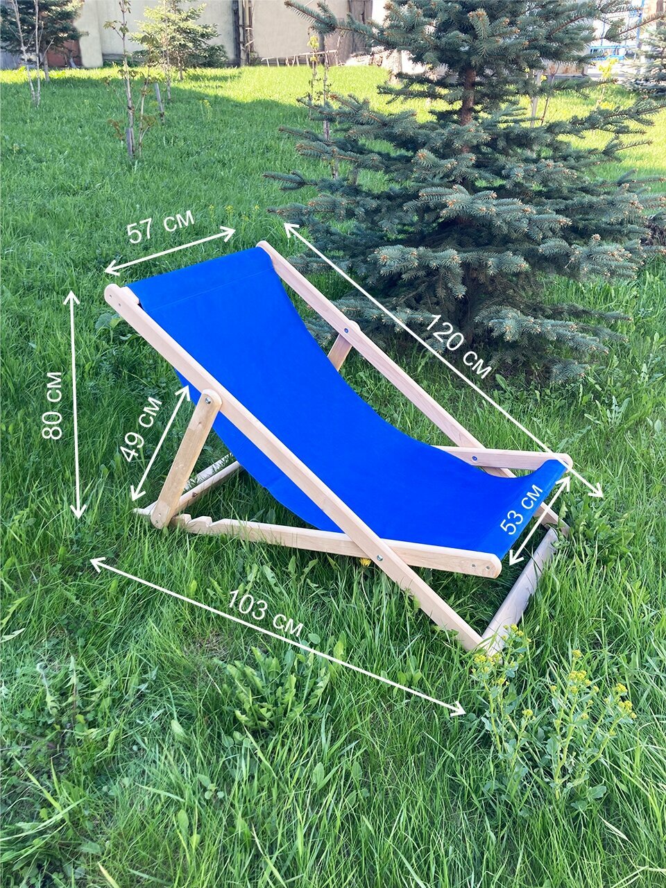 Кресло-шезлонг складной деревянный синий