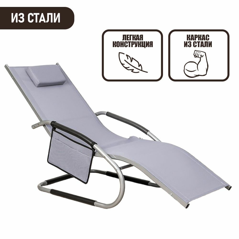 Купить Шезлонг-кресло для дачи анатомический из стали и текстилена Рипозо, серый