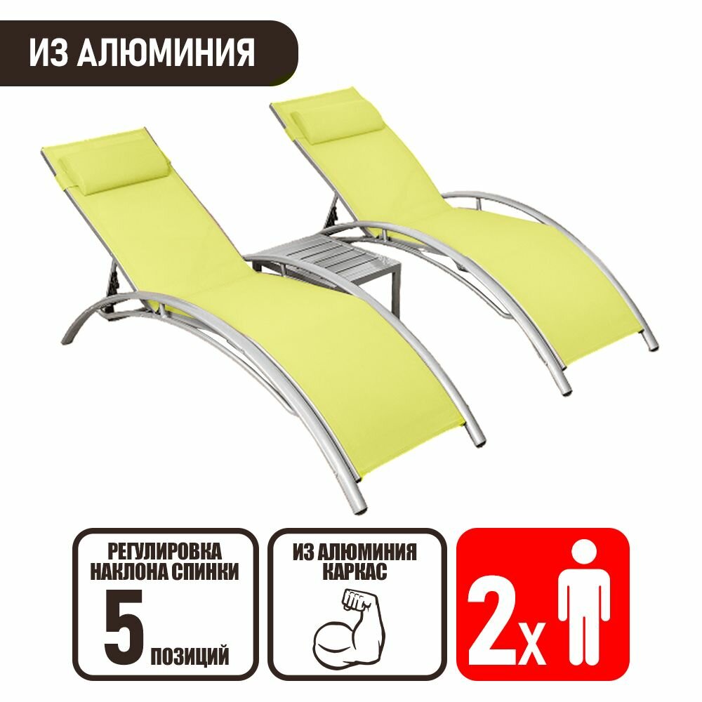 Шезлонг садовый для дачи складной алюминиевый Маре. Комплект 2 шт для дома, лаймовый