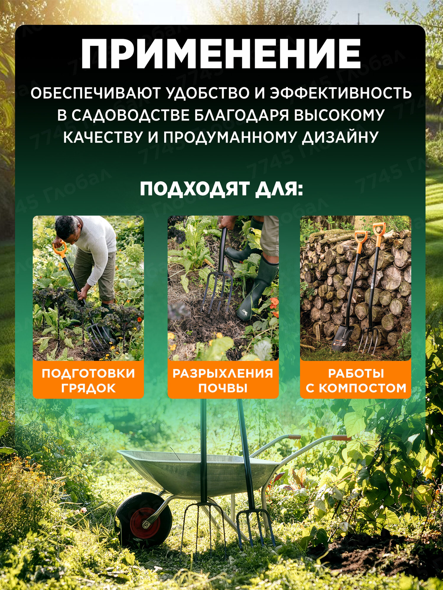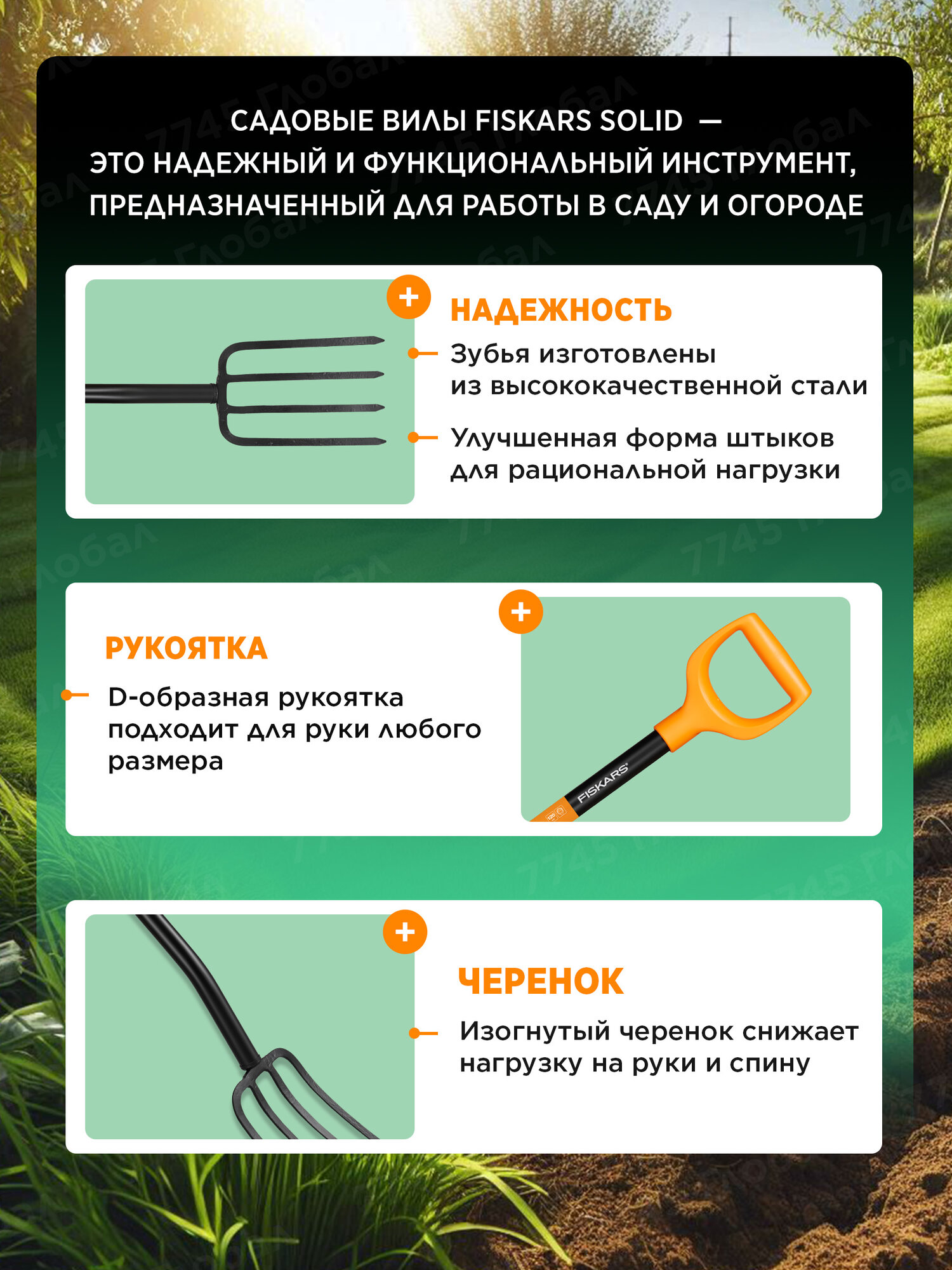 Вилы садовые универсальные копательные FISKARS Solid 1003458 133423, длина 122 см интересное:
