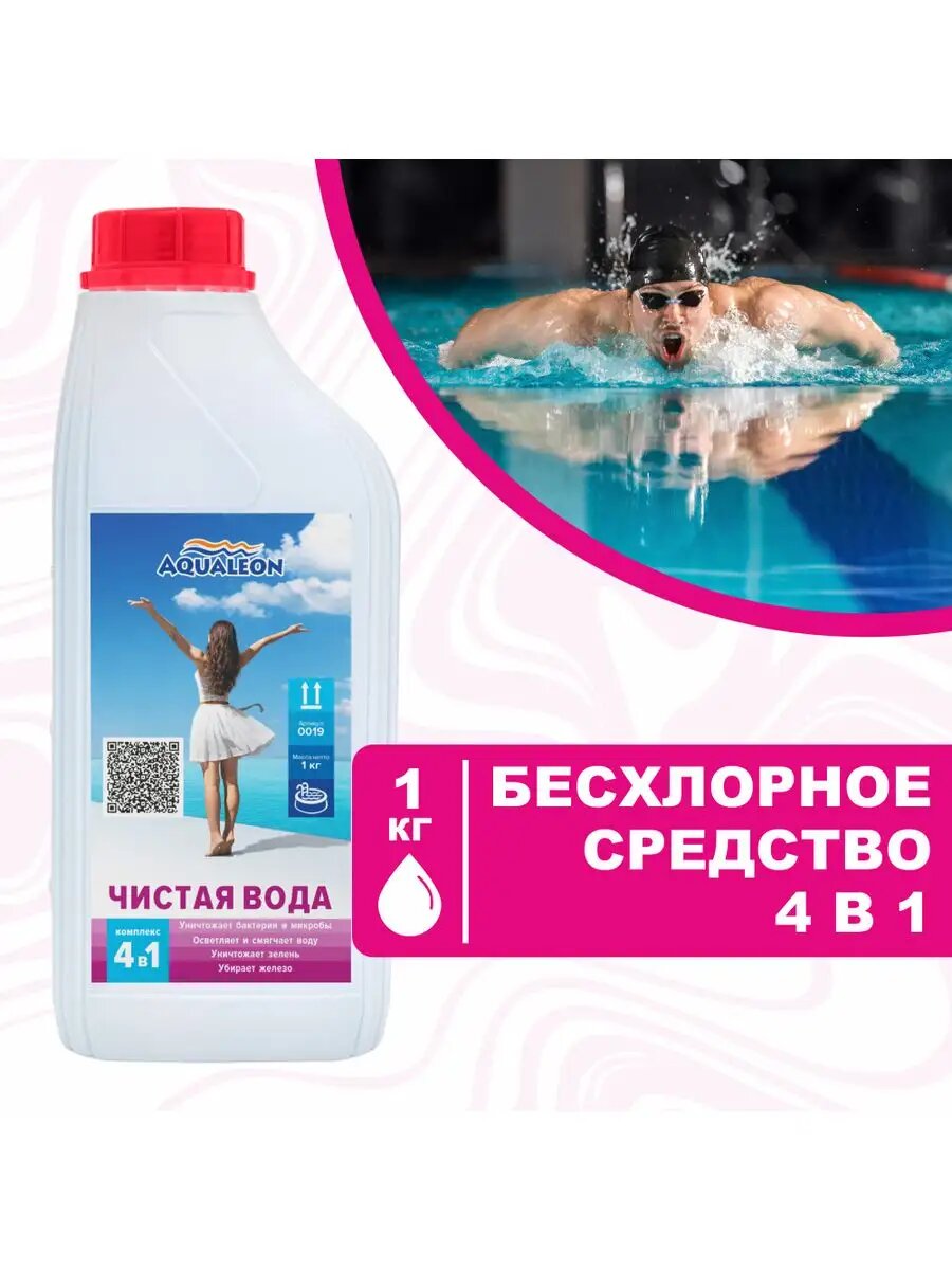 Дезинфицирующее комплексное средство Чистая Вода 4 в 1 Aqualeon 1 л .