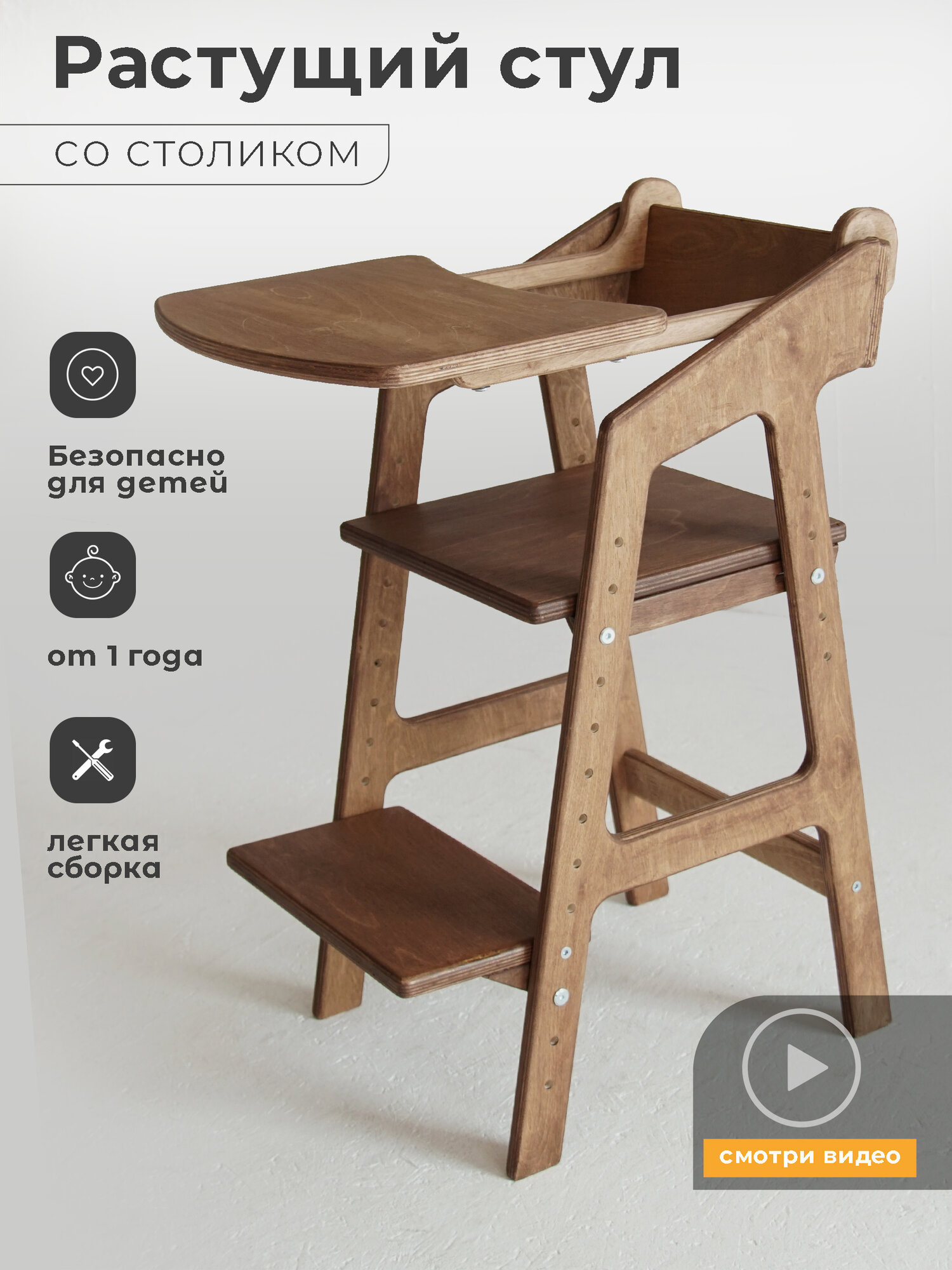 СохранитьРастущий стул со столиком / деревянный стульчик / цвет орех интересное: