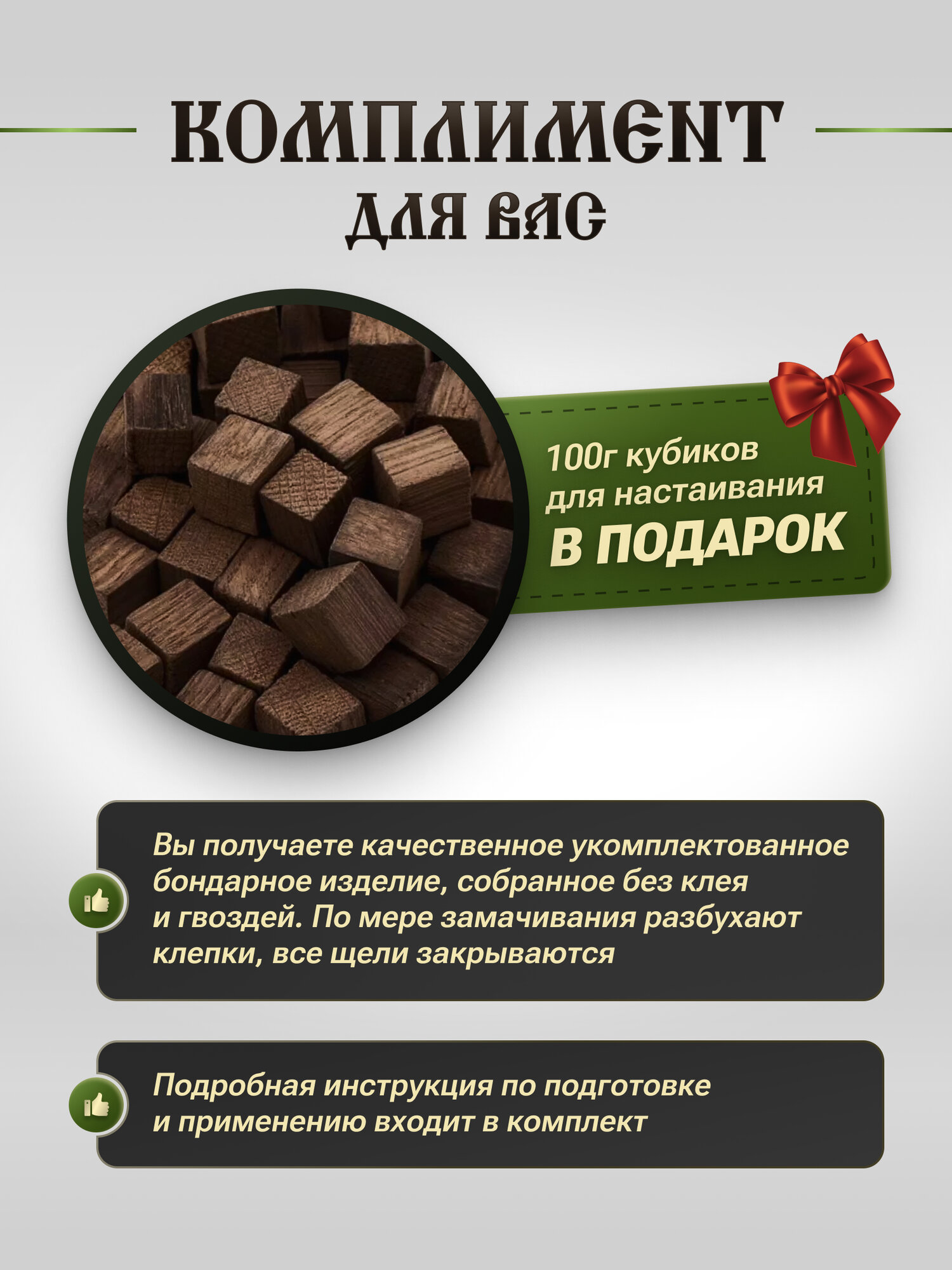 | Дополнительная информация | материал - кавказский дуб скальных пород; толщина клепки: 27 мм |