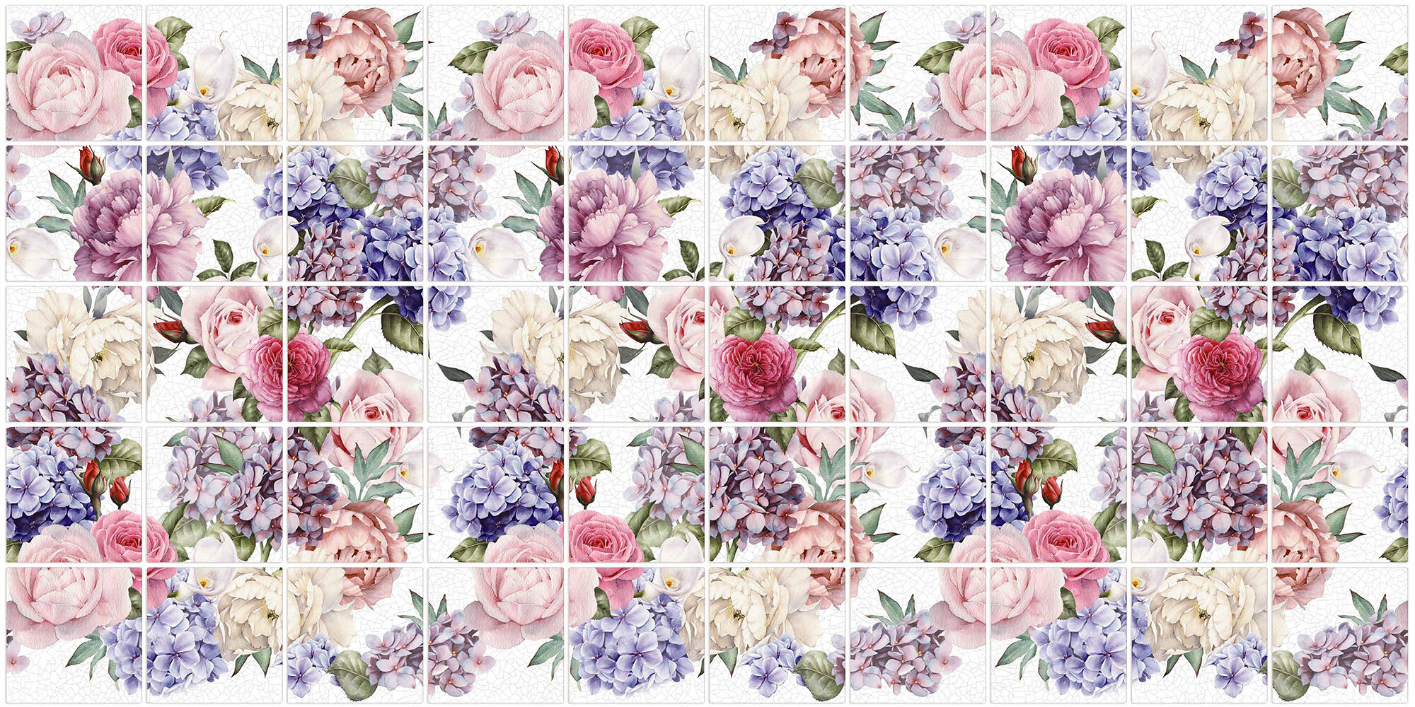 Купить Панель ПВХ "Гортензия" плитка 964х484 в количестве 10 штук (4,67м2)
