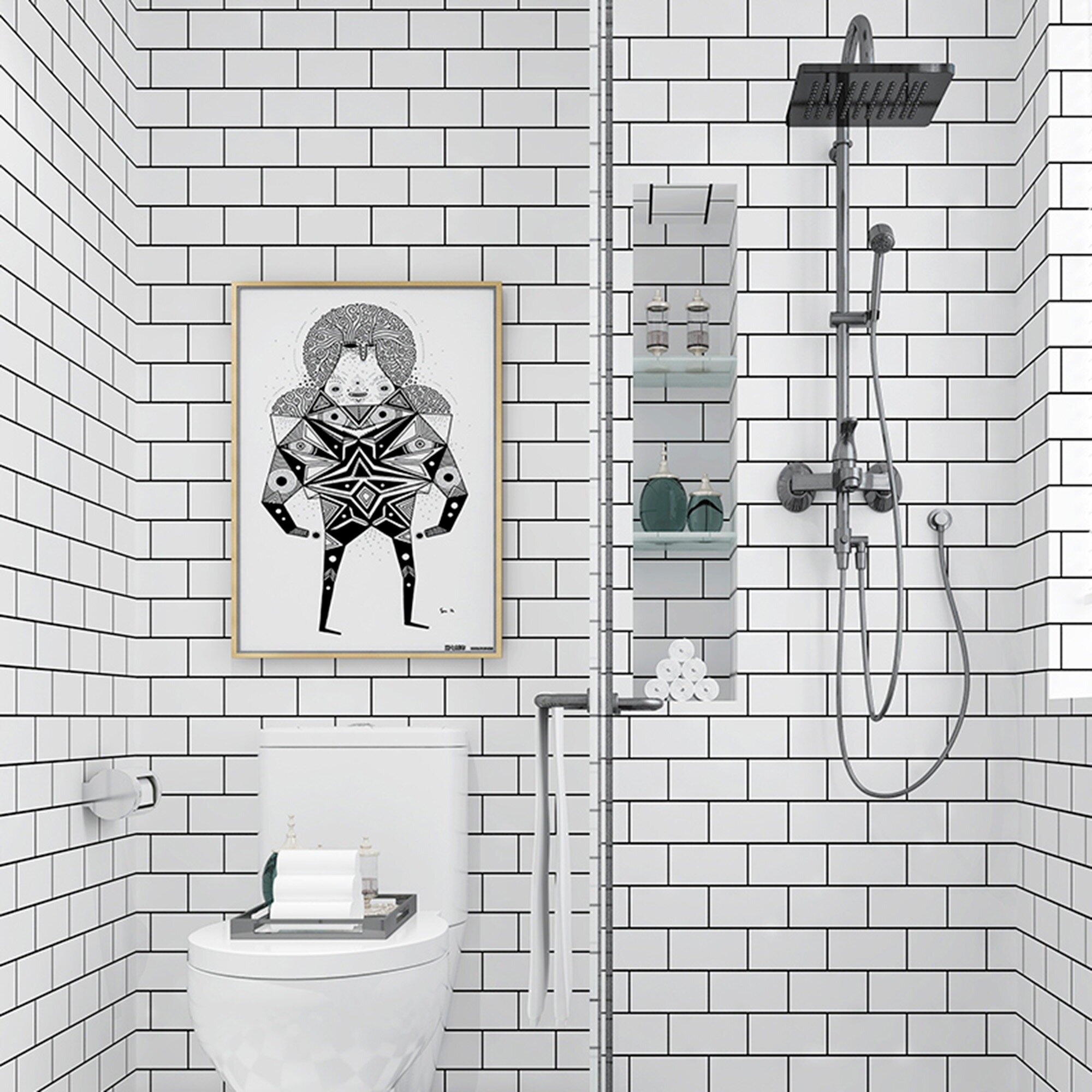 Мини Комплект 10шт Самоклеящаяся ПВХ плитка LAKO DECOR "Белая плитка", толщина 2мм, 1,8м²