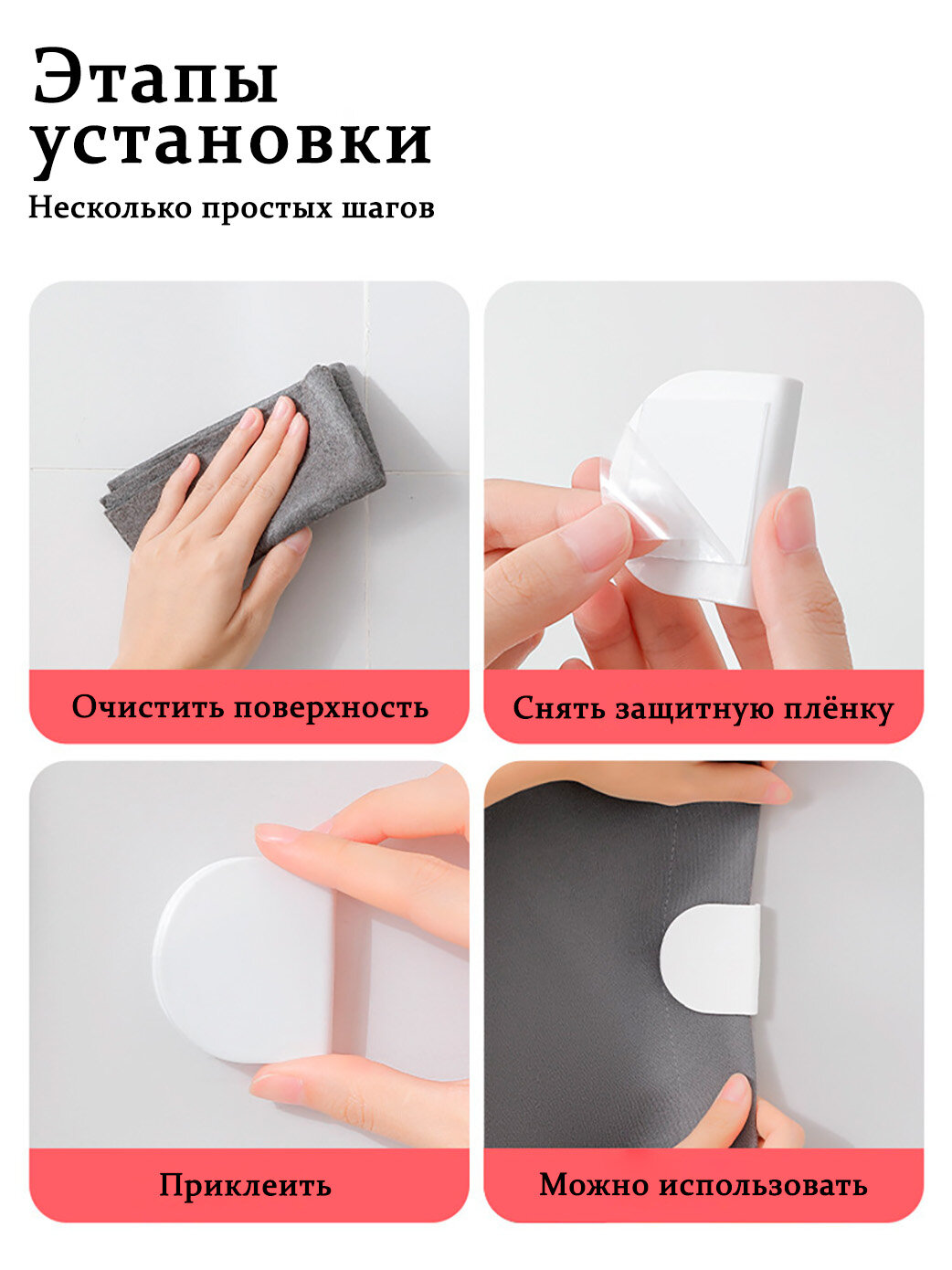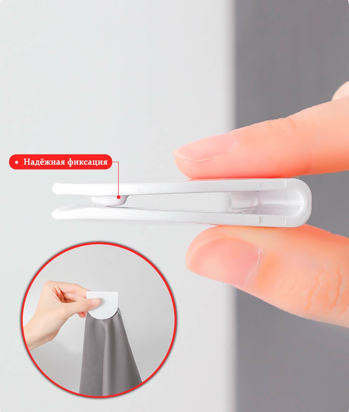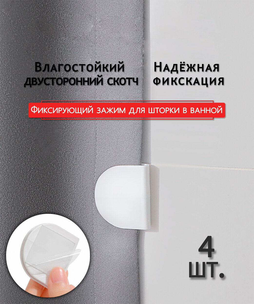 Держатель для штор в ванную, пластик, клейкая основа, 4шт, белый интересное: